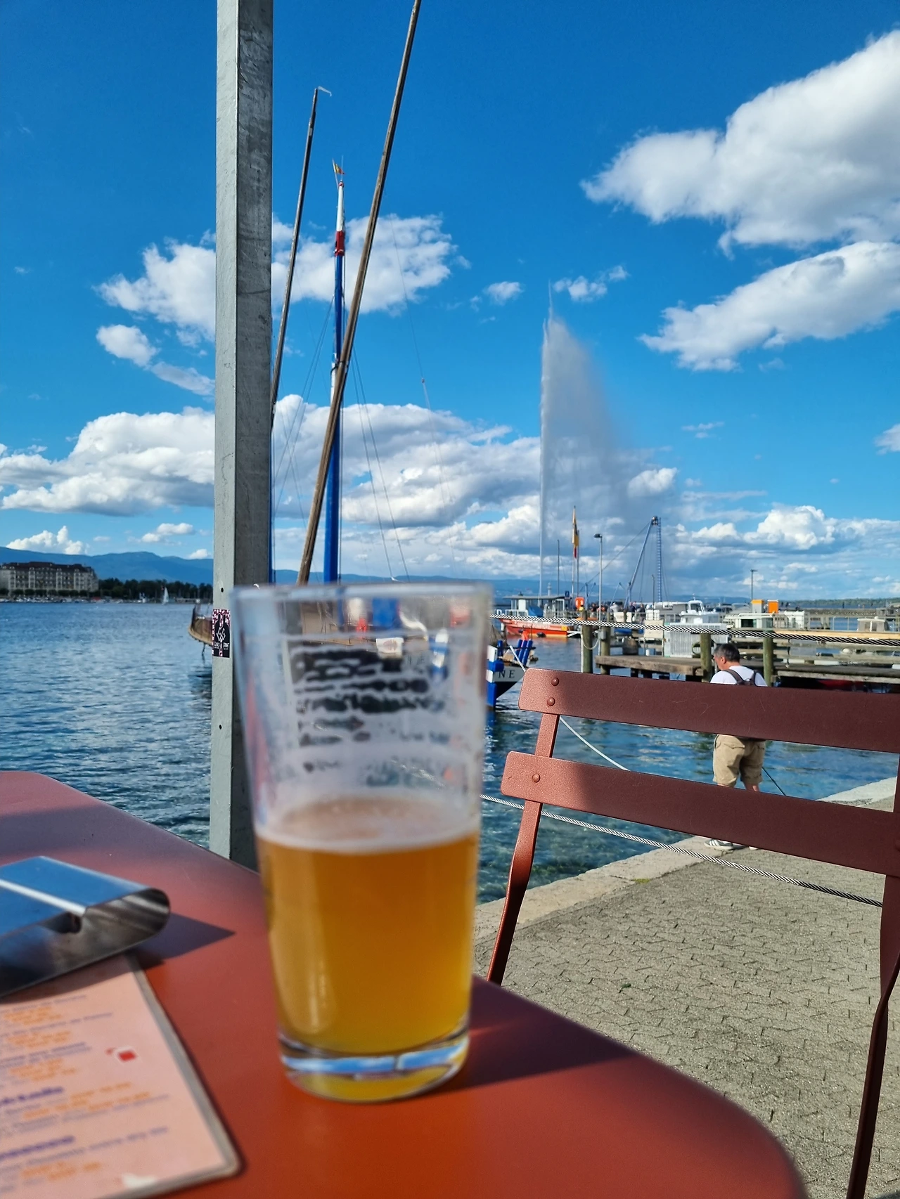 진짜 진짜 비싼 맥주를 먹었다. 요 작은 잔에 아마 만원? 그래도 레만호를 바라보며 한잔 먹고 있자니 야 해가 뜬 스위스는 진짜 사기네 싶다. 기분 좋아서 찐 웃음을 지었다. 제네바 노잼도신줄 알았는데 아니라더니 진짜 듣던 것처럼 예쁜데요?