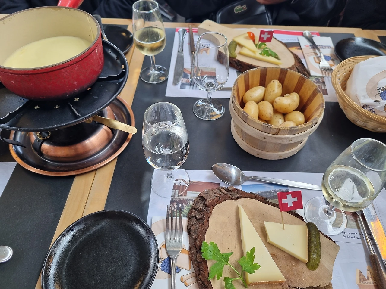 스위스치즈는 그런 거 아냐? 구멍 뽕뽕 뚫린 쥐가 파먹는 치즈. 아니네ㅋㅋㅋㅋ 그뤼에르 치즈를 먹으러 왔고(당연함. 지역 이름이 그뤼에르임) 체코 brambory라는 식당에서 당했듯이 치즈는 껍질 안 깐 찐 알감자에 찍어먹는 겁니다. 혼자 흡입했네. 사람들 대충 먹더라고. 이 맛있고(비싼 걸) 왜?