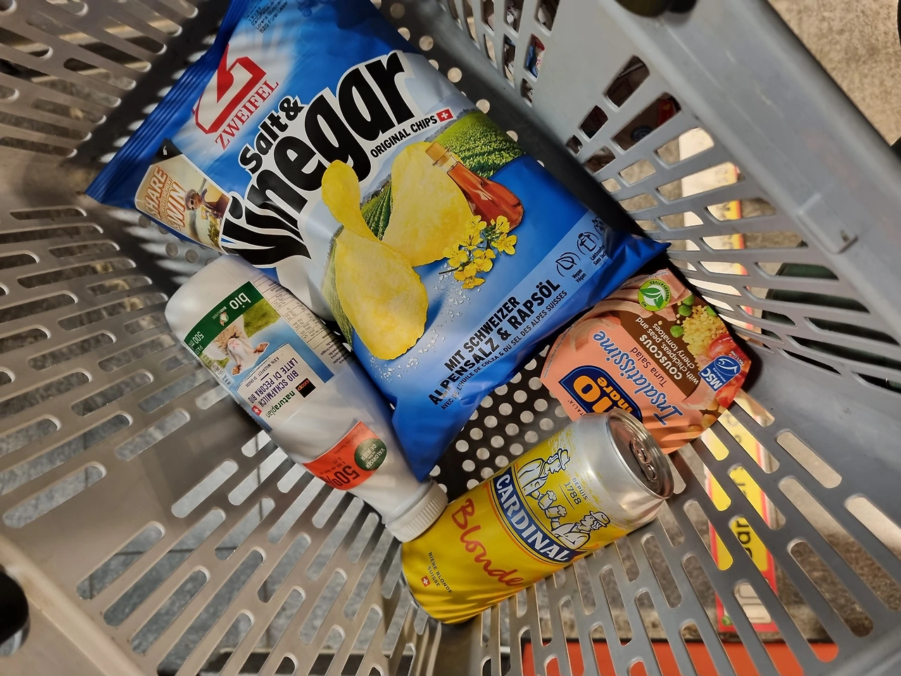 비싸서 별 걸 안 샀다. 요다음 알프스 일정에서 알게 된 산양유를 계속 못 찾겠더라니 역시 대도시 제네바에 있더라. 아래 사진은 마지막날 저녁(비싸서 한 끼는 이렇게 대체)