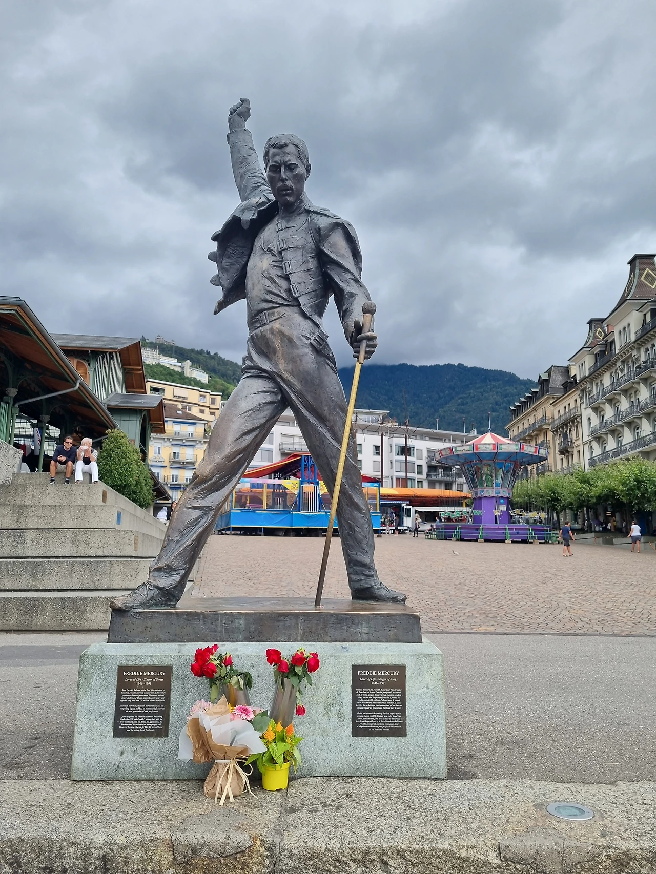 아?? 이거 몽트뢰도 가는 일정이네?? 몽트뢰 사실 가고 싶었다. <비긴어게인>에도 나왔었거든... 한국의 여행로망은 <꽃보다 시리즈>와 <비긴어게인>으로 점철되어 있다...... 그리고 저는 집에 가면 <텐트 밖은 유럽>도 볼 것이다...... 자유시간이 짧은데 프레디머큐리 보고 오느라 땀범벅. 기차를 내리고 투어버스에 다시 오르는 시간이 좀 모자랐다. 한국인답게 경보로 찍고 옴. 야 습기 높으니까 땀 진짜 많이 나네. 이제 알프스로 가자. 거긴 춥대.