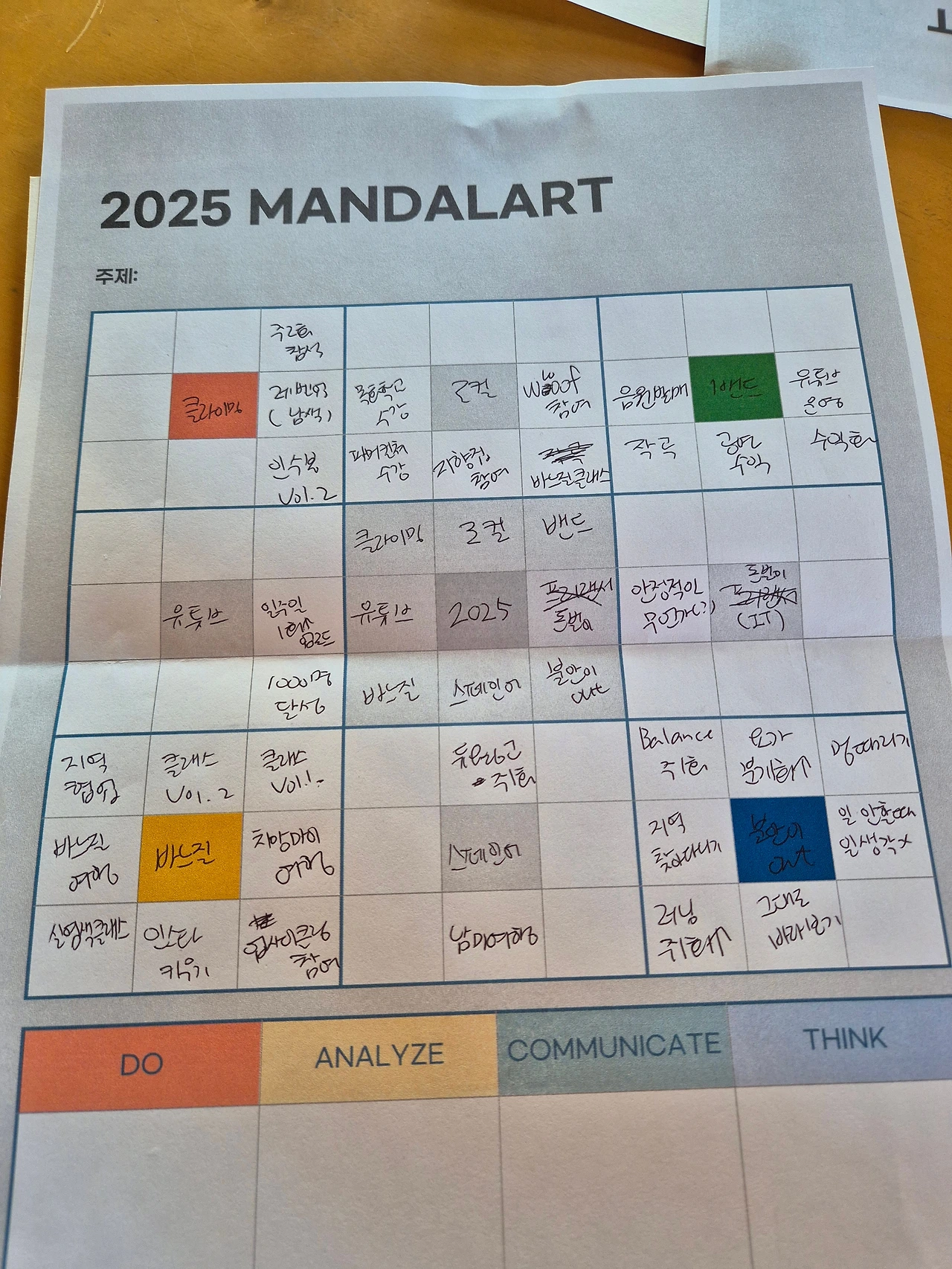 2026년으로 가는 길목에서 돌아보는 2025년 초에 작성했던 나의 만다라트.