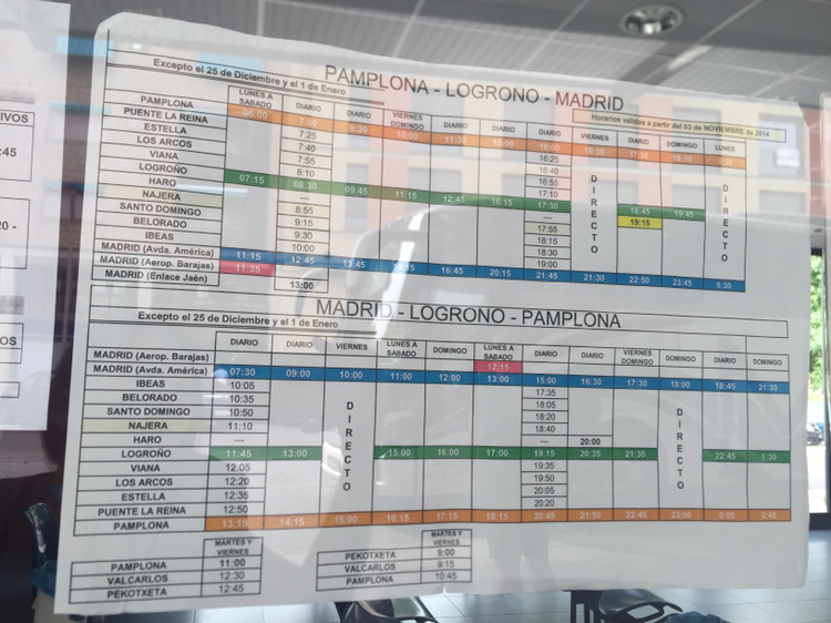 버스를 타고 어디로 이동할까. 나헤라 다음 큰 도시들은 산토 도밍고, 벨로라도, 그리고 좀 더 가면 부르고스 등이 있었다. 목적지를 정해놓고 걷지 않았던 것처럼 이번에는 버스 시간표에 내 목적지의 운명을 맡겨보기로 했다. 운명은 나를 어느 도시로 이끌까?