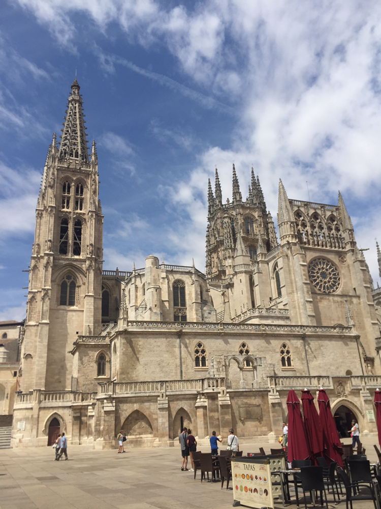 짐을 풀고나선 아까 못다한 부르고스 대성당 구경하러 나섰다. 부르고스 대성당은 스페인 3대성당 중 하나로 꼽히는 웅장함을 자랑하는데 처음으로 내부를 구경하는데 비용을 지불한 성당이다. 운 좋게도 순례자들에겐 금액을 반으로 할인해주어 3.5유로를 내고 내부를 살펴볼 수 있었다. 성당 내부는 창문 하나, 벽돌 하나까지 전부 예술작품이라 해도 과언이 아닐정도였다. 예술혼이 담긴 대성전에서 경건한 마음을 숨길 수 없었다.