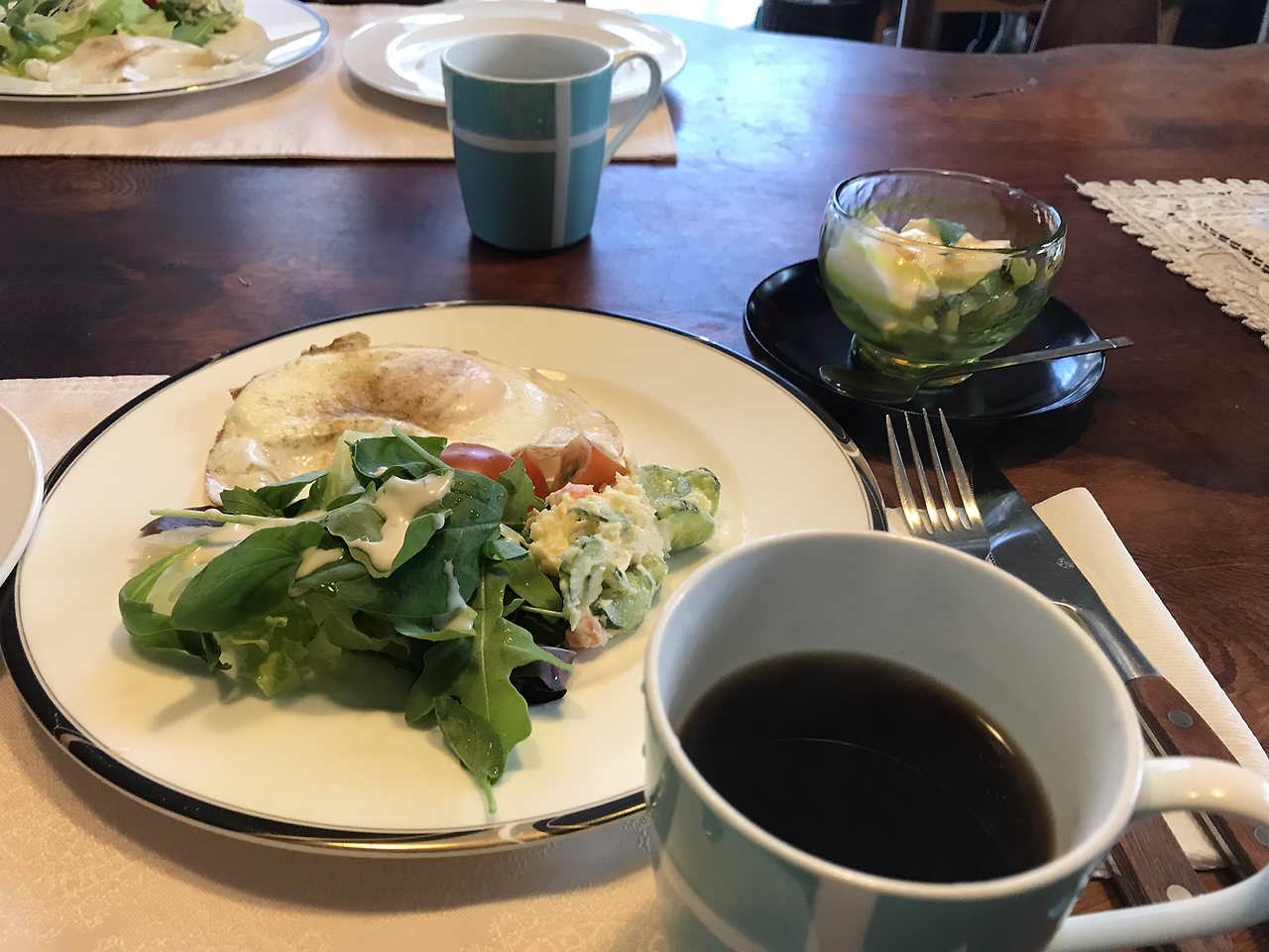 곧 맛있는 냄새가 솔솔 풍겨와 부엌으로 향했다. 손으로 하는 건 다 좋아한다더니 치에코 상의 아침상은 그야말로 예술이었다. 정갈하면서도 아름다운 플레이트와 적당한 간, 직접 길러낸 토마토와 오이의 신선함까지. 이런 극진한 대접을 받아도 되는 건가 멍해졌다. 나도 모르게 공손한 말투로 “이타다끼마스”를 외치며 맛있게 식사했다. 역시 정갈한 식사는 마음과 몸을 든든하게 한다.