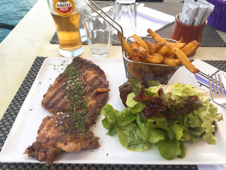 다시 바욘으로 넘어와 강가를 바라보는 테라스에서 저녁 한끼. 소고기 요리였는데 맛있었다. 야경을 바라보며 먹을 수 있었으면 좋을텐데 요즘의 프랑스는 해가 정말 길다. 밥을 먹는동안 8시가 넘었는데도 해가 지지않음.