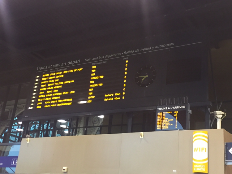 여행온 후 모든 일이 다 잘풀려서 운이 좋다고 생각하던 중 오늘은 드디어(?) 일정이 꼬여버렸다. 아침 7시 45분 Saint-jean-pied-de-port 행 기차를 탔어야 하는데 이를 눈 앞에서 놓치고 지금은 다음 기차를 기다리고 있다.
