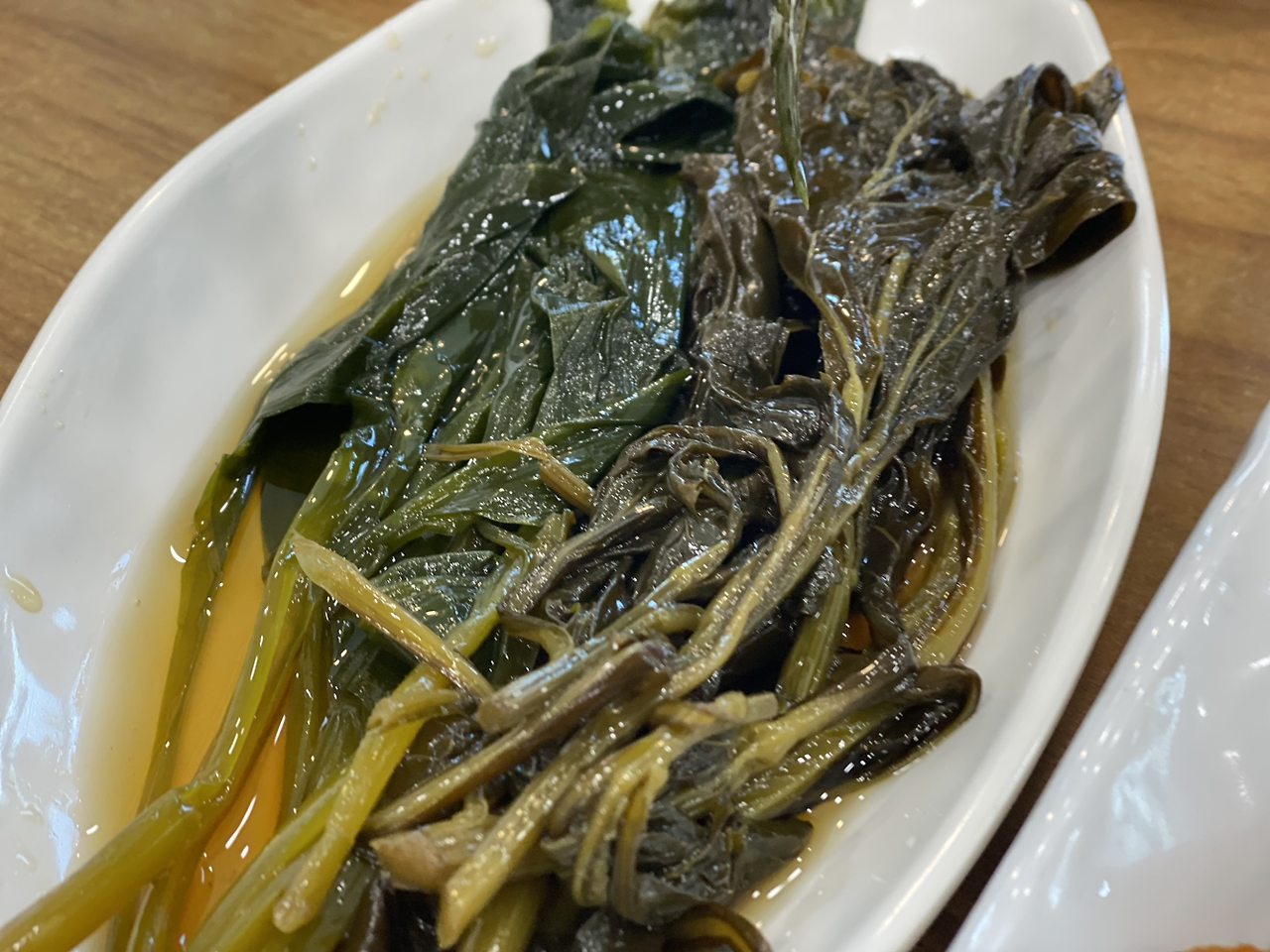 잘 절여진 명이나물을 잘 먹고 있었는데, 우리가 너무 게걸스럽게 먹은 탓인지 아주머니께선 다른 건 그냥 떠올 수 있지만 명이나물 반찬은 추가요청에 5천 원을 받는 식으로 계산이 되는 게 조금 아쉬웠다. 고기반찬도 아니고 나물 반찬을 눈치 보고 명은 적은 처음이라 씁쓸하기도 하고, 오직 이곳에 서면 자생하는 명이나물이라 고기 값만큼이나 나가는 음식이다 싶어 한 장씩 음미하면서 먹었다. 물론 친구들과 사이좋게 말이다.