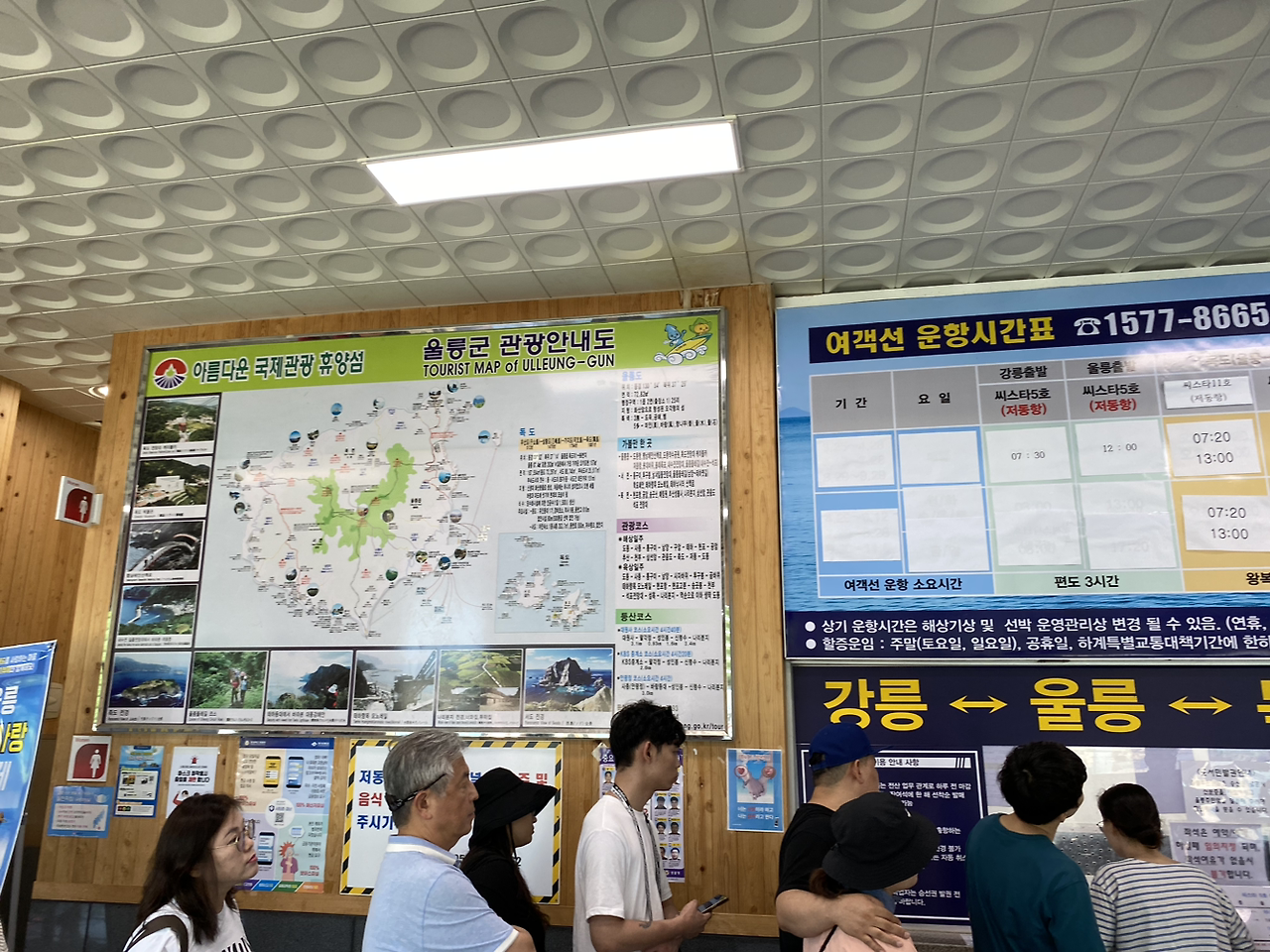 2시 정각이 되어 4시 독도로 출발하는 배 표를 판매하기 시작했다. 다행히 우리는 조금 빨리 도착한 사람들이었기 때문에 표를 받아 들 수 있었다. 혹시나 못 사는 사람이 있을까 싶어 미안한 마음에 밖으로 나와 울라관광센터에 다시 방문을 했다. 남은 시간엔 센터에서 반을 보내고 다시 대합실에서 반을 보냈다.