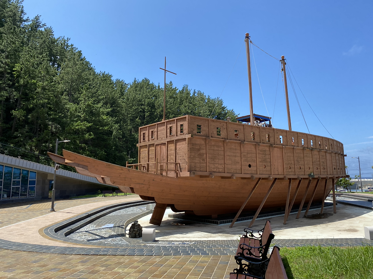아무튼 이 동내를 들어서는데, 가게를 발견하기도 전에 아주 큰 건물에 배 모형을 전시하고 있는 수토역사 전시관을 먼저 보게 되었다. 마침 주차장도 넓었고, 사람들도 없었던 터라 우린 망설임 없이 입장을 했다. 당시 근무하시던 직원분들이 계셔 허락을 받고선 바로 들어갔다.