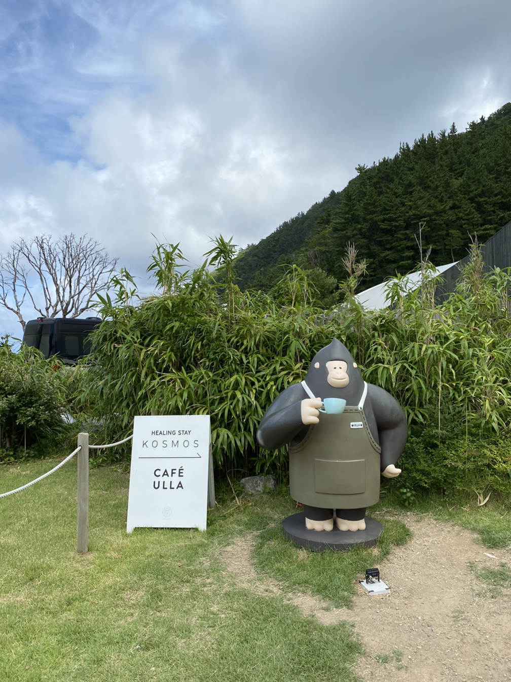 생각보다 카페는 아주 좋은 위치를 가지고 있었다. 뒤로 보이는 산은 울릉도의 상징인 고릴라를 한층 더 돋보이게 하고 시진을 찍으면 배경 때문인지, 아니면 크기 때문인지 정확하게는 알 수 없지만 현실성 없이 사진에 나오는 것 같다. 크기도 크기지만 산과 어울려 있으니 야생의 모습이라 해야 될 것만 같았다. (물론 전혀 그럴 일은 없겠지만 말이다.)