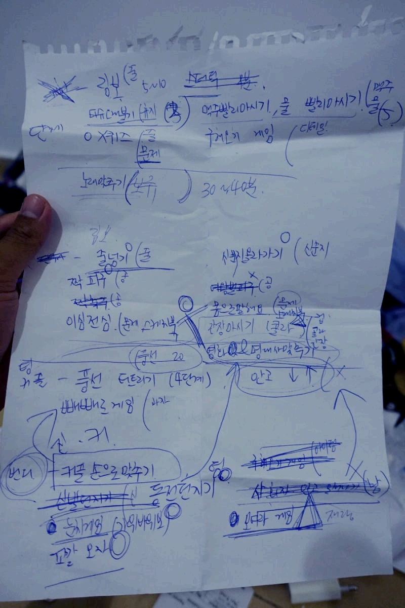 예능에서 봤던 거, 학창시설 학교에서 해봤던 것까지 모든 자료를 조사해 왔다. 그렇게 아이디어가 들어오면 큰 종이에 옮겨 다 쓰고, 까먹지 않게 정리를 해두었다. 한국이 아니라 거창한 체육대회를 기획하더라도 막상 필요한 준비물은 생각해 보면 포기해야 하는 일이 더 많았다.