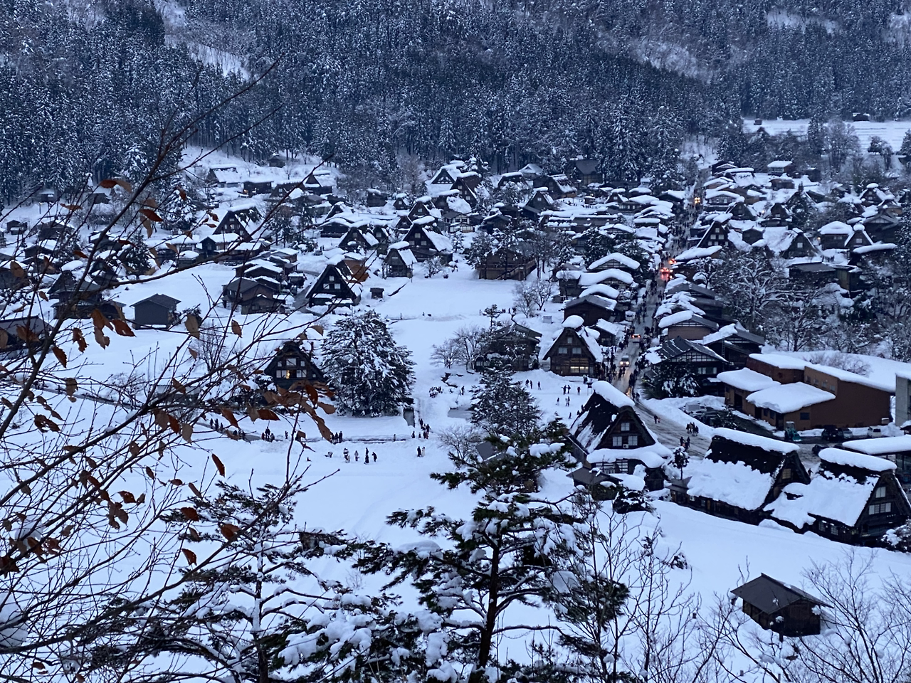 가이드는 반드시 들러야 할 곳으로 전망대를 추천했다. 분지 형태의 마을에 옹기종기 모여 있는 갓쇼즈쿠리 가옥의 모습은 높은 곳에서 내려다볼 때 더욱 특별해진다고 했다. 하지만 다카야마에서 이동하는 동안 눈이 쉴 새 없이 내렸고, 버스는 거북이처럼 천천히 움직였다. 결국 우리가 도착했을 땐 이미 전망대가 문을 닫은 후였다. 전망대라고 해봐야 높은 곳의 작은 건물 하나와 멀리 볼 수 있는 망원경이 전부였겠지만, 그곳에서 마을을 내려다보는 풍경만큼은 놓치고 싶지 않았다.