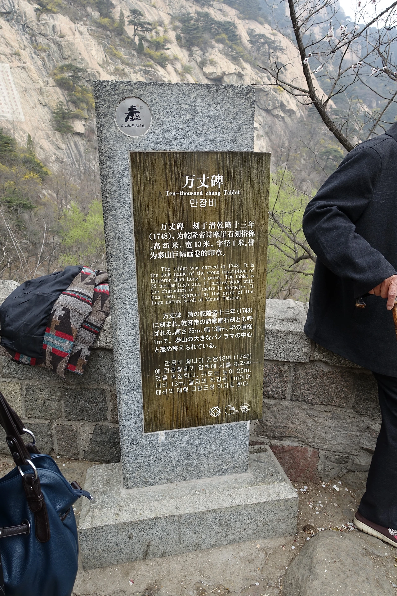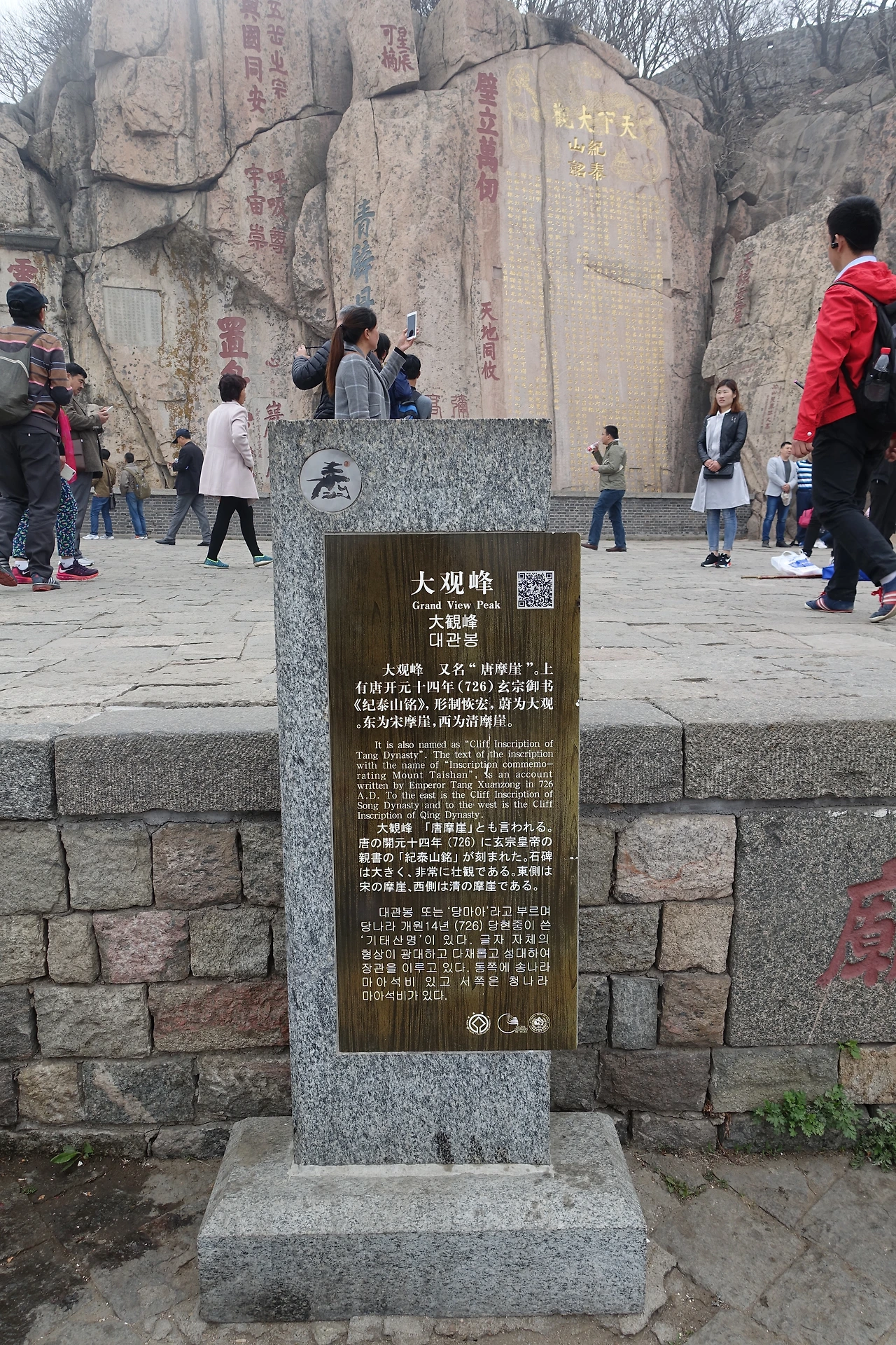 날씨는 하늘의 영역이라 맑은 하늘에 전경을 볼 수 없었지만 바람이 만들어준 기회의 순간. 잠깐 구름이 걷히면 보이는 절경이 인상적이었다. 누구나 태산을 오를 수는 있지만 모두가 끝까지 갈 수는 없다. 케이블카까지 만들어 오르는 사람이 더 많아진 지금도 태산의 신비로움과 영험함은 중국인뿐만 아니라 많은 한국 관광객에게도 전해지는 듯하다.