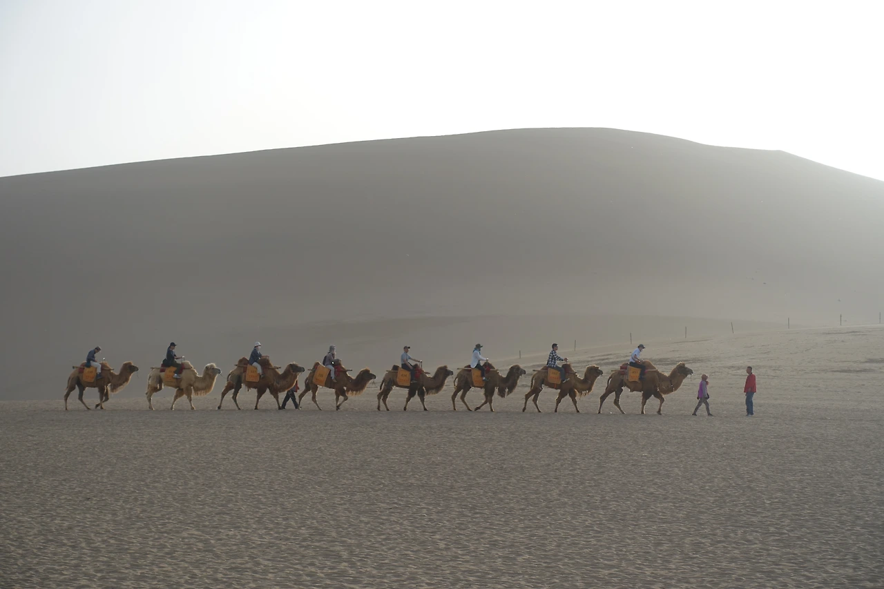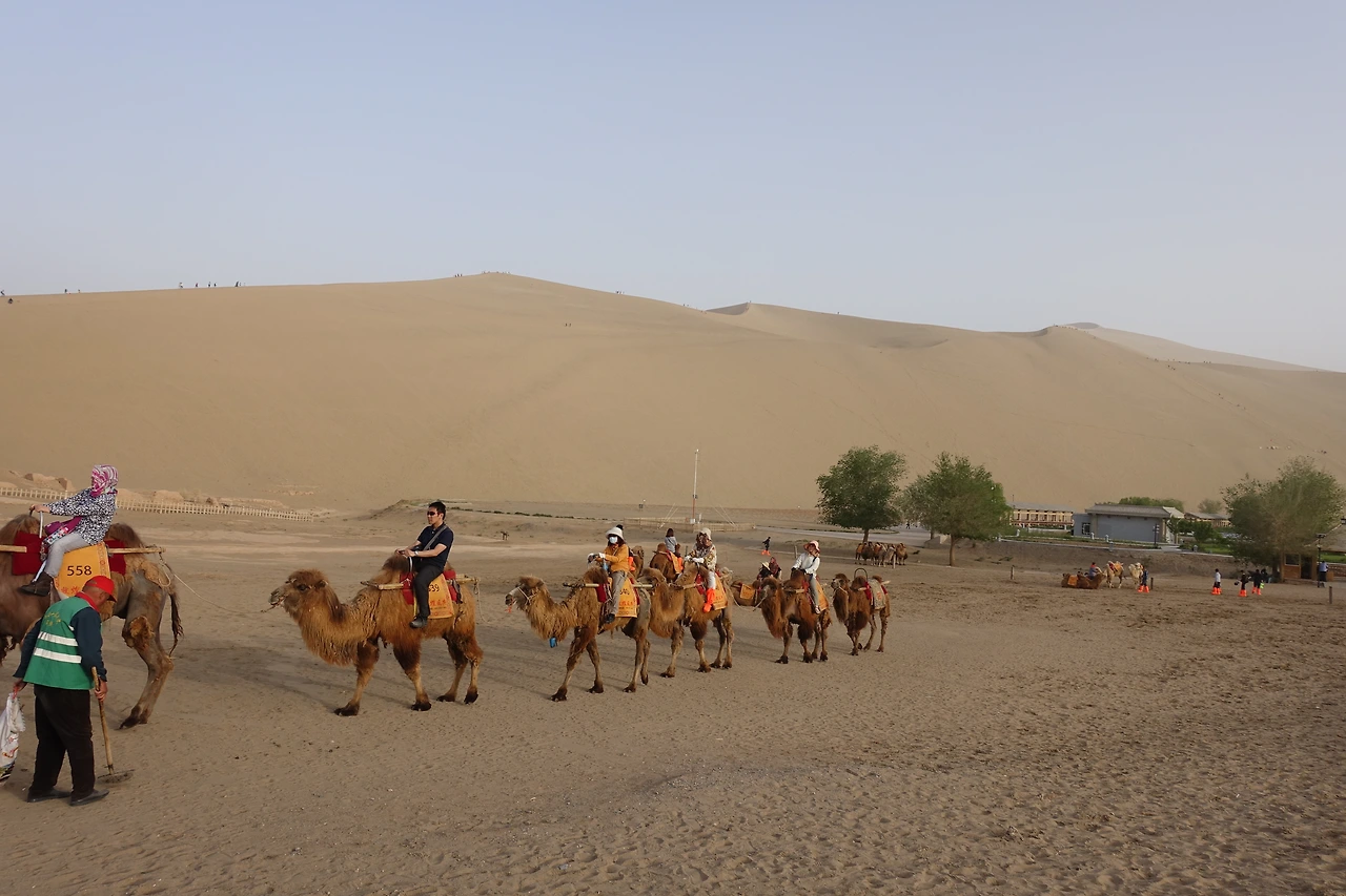 중국에서 볼 수 있는 뜻밖에 자연은 바로 사막이었다. 여행을 다니기 전 나에게 사막이라는 이미지는 이집트의 피라미드가 보이고 오아시스가 있으며, 그 길을 따라 낙타가 걸어 다니는 모래 바람에 척박한 땅이었다. 그래서 사람들은 큰 천으로 머리와 얼굴을 감싸며 낙타를 타고 사막을 횡단하는 모습이 제일 먼저 떠올랐다.