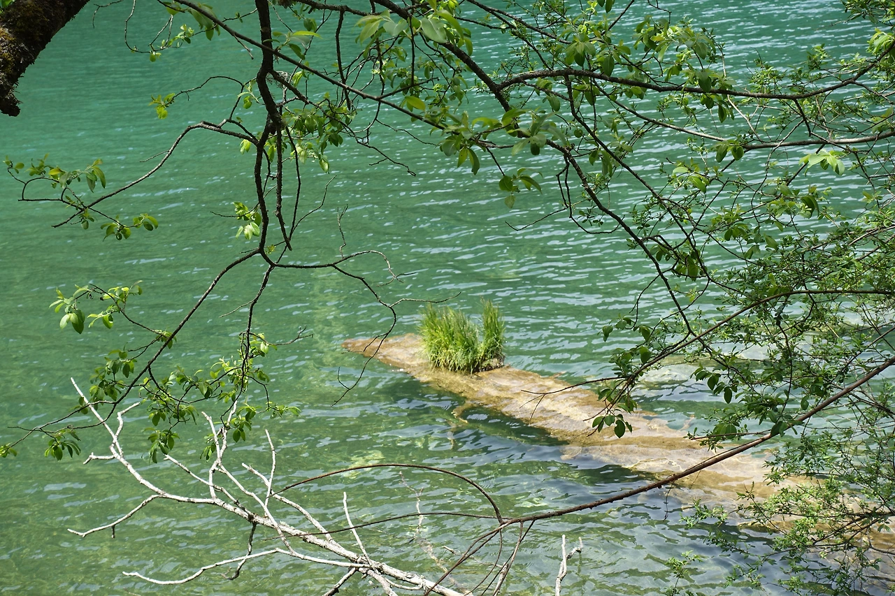 물속에 담긴 나무는 석회의 함류량이 높은 물을 먹은 탓에 쓰러진 것이지만 누군가의 예술 작품처럼 독창적이고 예술의 미가 넘치는 모습을 하고 있었다. 나무의사나 식물학자가 들으면 화를 내겠지만 그저 아무것도 모르는 나의 눈엔 작품과 견주어도 부족함이 없었다.
