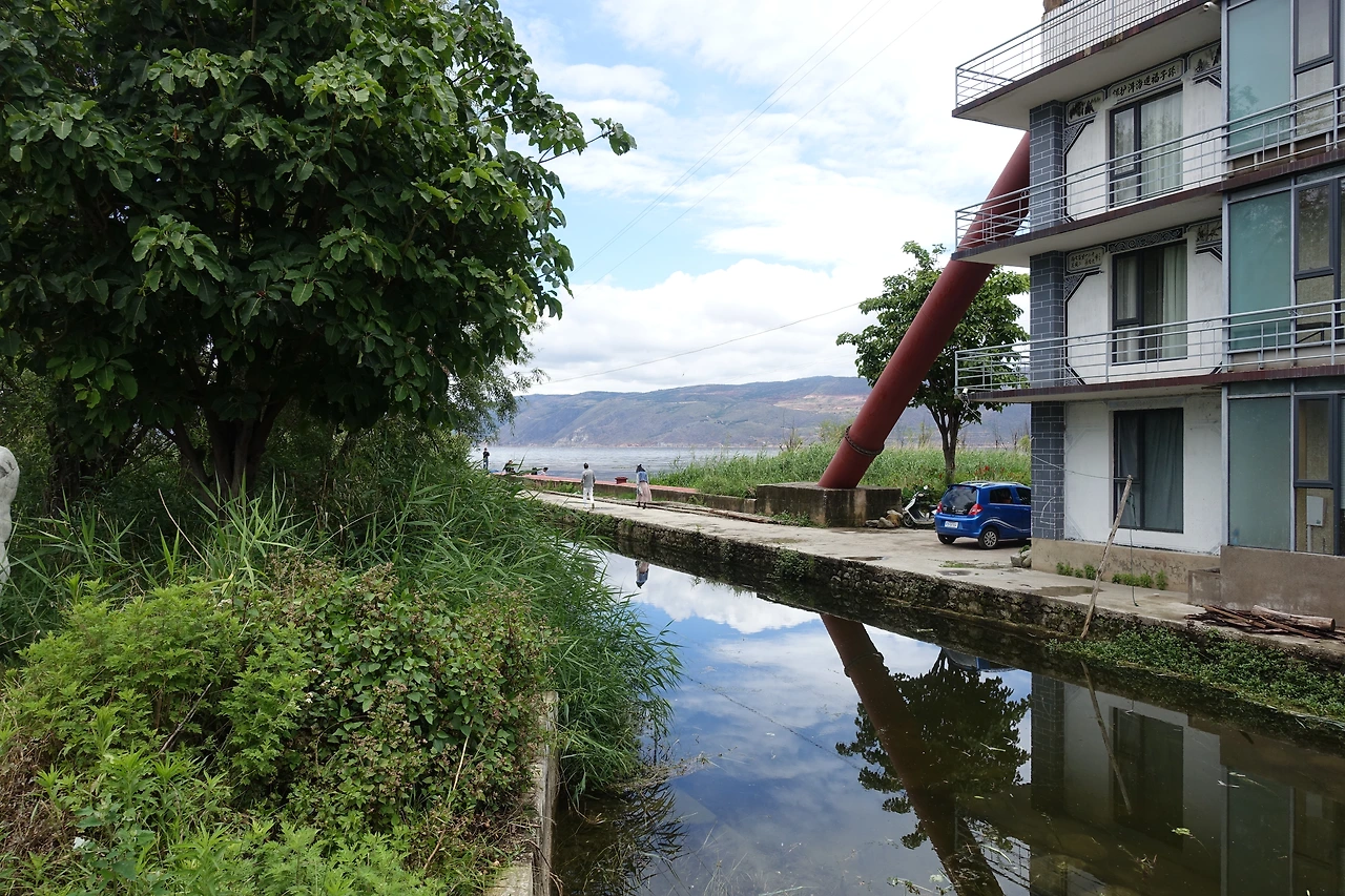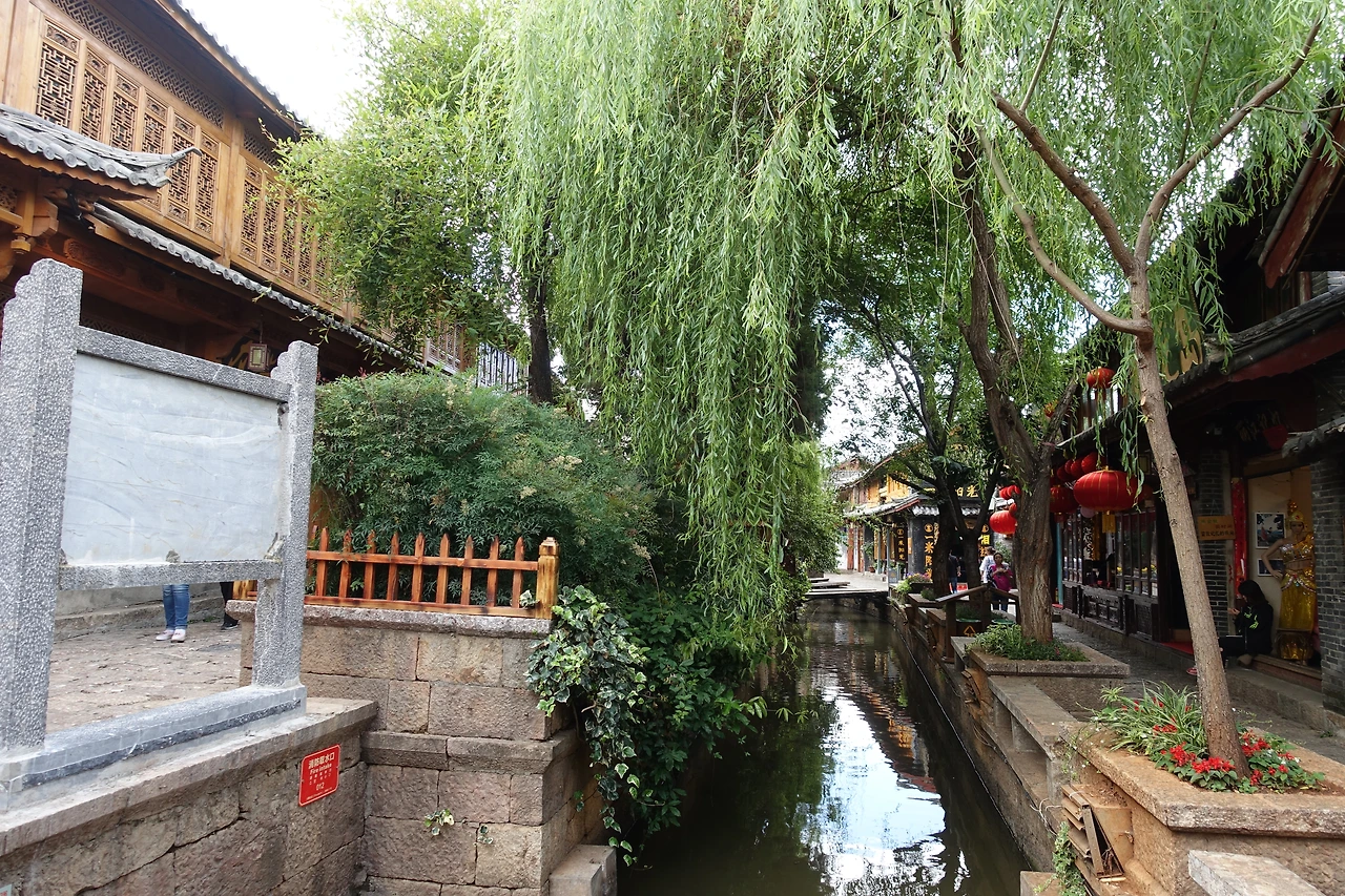 중국여행을 생각해 본 적이 있거나 다녀온 적이 있는 사람은 리장 하면 (여강: 리장의 한자어) 강이 먼저 떠오르거나 물을 먼저 떠올릴지 모른다. 우리 숙소는 리장에서 조금 떨어진 작은 숙소였는데, 그곳의 가장 큰 장점은 호수가 문을 열면 바로 보인다는 것이다. 리장에 흐르는 물은 옥룡설산의 눈 녹은 물이 흘러내려오면서 도심의 수로를 채우는 것이다.