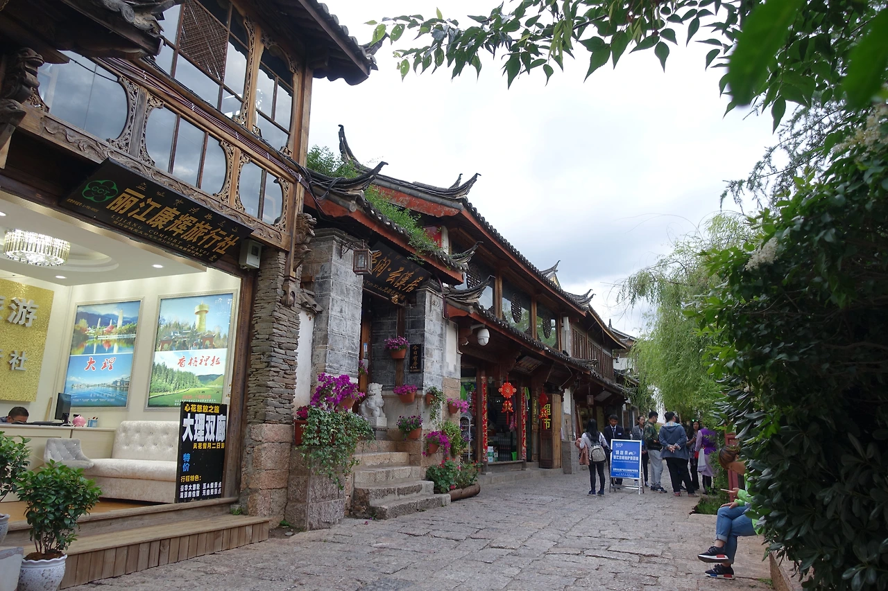 윈난 성의 리장은 호도협이나 차마고도를 다녀오거나 트레킹 하기 위해 도착하는 베이스캠프와 같은 곳이다. 이곳에서 사람들의 교류와 정보공유 및 준비물 확인이 이루어지는 곳이다. 그렇다 보니 자연스럽게 사람들이 몰려드는 것은 당연한 수순이다. 낯 선 곳에 도착하면 제일 먼저 숙소에 짐을 풀고 나와 밖을 한번 둘러보는 것부터 여행을 시작된다. 숙소는 죄다 한자로 되어있어 늘 찾는데 애를 먹고 있기는 하지만 지도를 보며 따라가다 보니 중심에서 조금 떨어진 곳에 숙소가 위치해 있었다.
