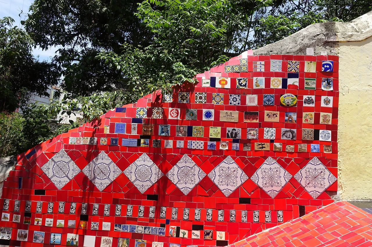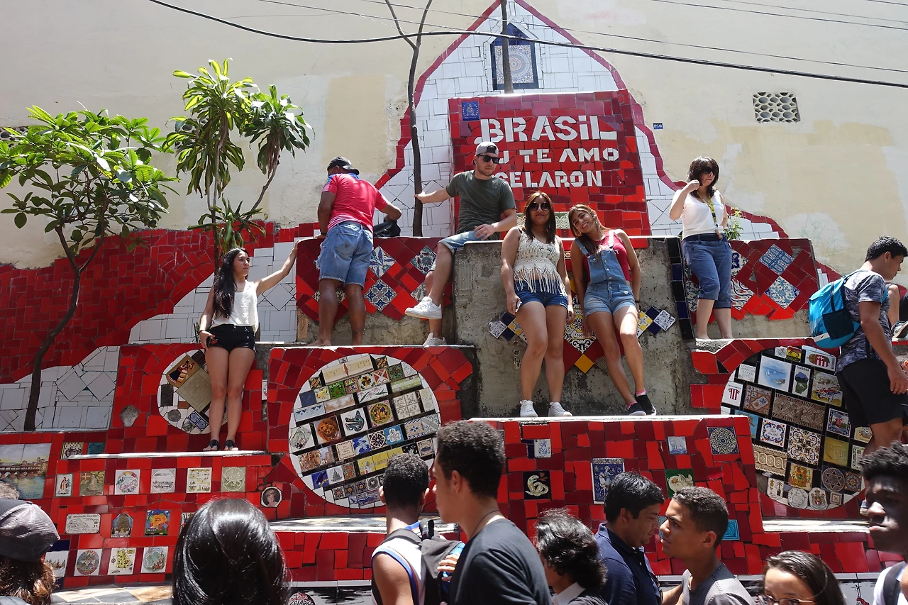 동행과 함께 첫걸음을 옮긴 곳이 바로 세라론의 계단이다. 브라질 리우에서 가장 유명한 장소로 세라론이라는 디자이너가 만든 타일 예술작품과 동시에 사람들이 주로 찾는 명소로 자리 잡은 곳이다. 수많은 인파가 모여 소매치기 많다는 이야기는 있지만, 사복 경찰과 관광 가이드들이 활보하고 있기 때문에 위험하거나 긴장을 해야 하는 정도는 아니라는 점에 안도를 내쉰다.