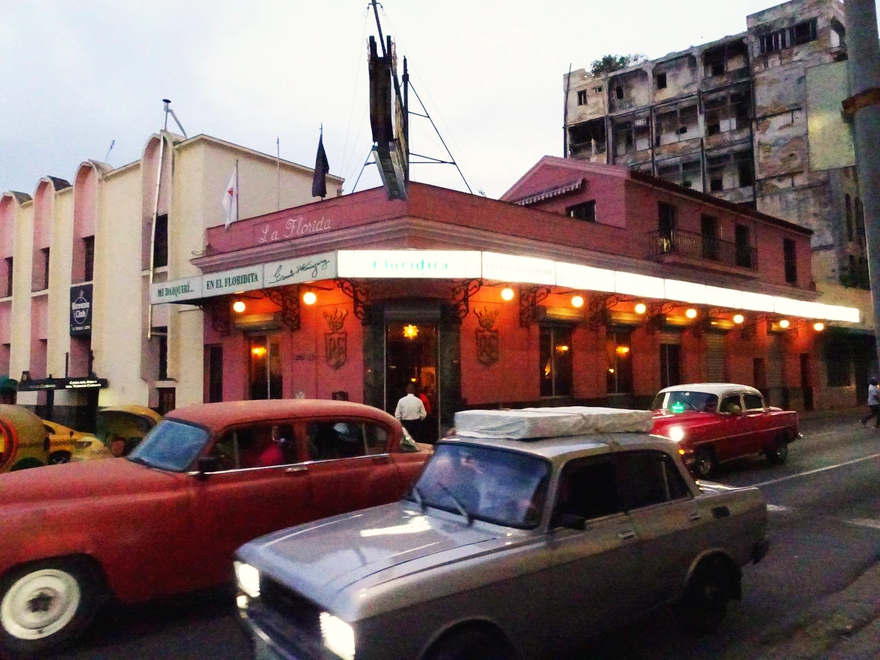 숙소에서 오비스포거리로 걸어 들어가면 입구 가장 앞에 위치하고 있는 헤밍웨이의 단골 술집인 '라 플로리다'가 위치하고 있다. 그 명성에 걸맞게 저녁시간이 되니 발 들여놓을 공간도 없다. 사람들로 북적이는 곳으로 들어가 봤다. 안쪽에는 밴드가 쿠바의 음악을 쉴 새 없이 연주하고 있고, 흥에 오른 사람들은 몇 잔을 마셨을지 모르지만 또다시 바텐더에게 쿠바의 술 '다이끼리'를 주문하는 소리로 더 시끌하다.