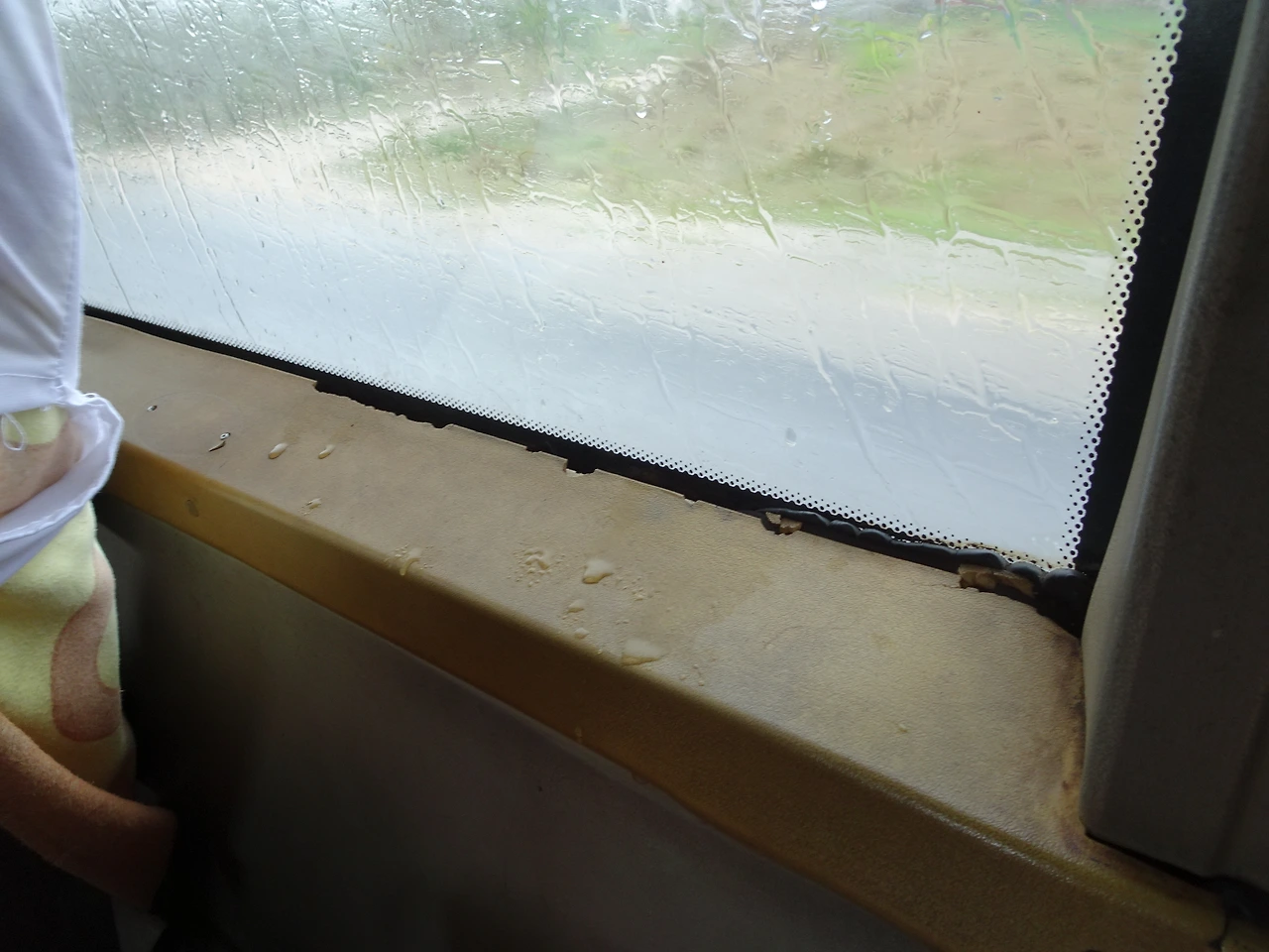 밖이 소란하더니 이내 비가 오기 시작했다. 날이 밝은데 비가 오는 것을 보니 아마 지나는 비 일 것이라 생각했다. 그 잠시 지나는 비가 갑자기 내 자리로 들어오기 전까지는 운치 있는 버스여행이었다. 처음엔 몇 방울이 떨어지더니 나중엔 물이 타고 내려온다.