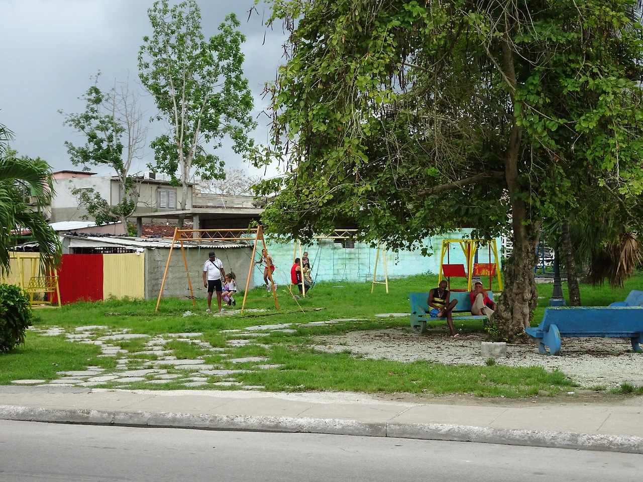 조금 걷다 보니 쿠바 특유의 형형색색의 벽으로 둘러싸인 공터에는 낡은 놀이기구 몇 개가 있는 놀이터가 만들어져 있었다. 그곳에는 아빠와 엄마의 손을 잡고 나와 놀고 있는 어린이들이 보였다.