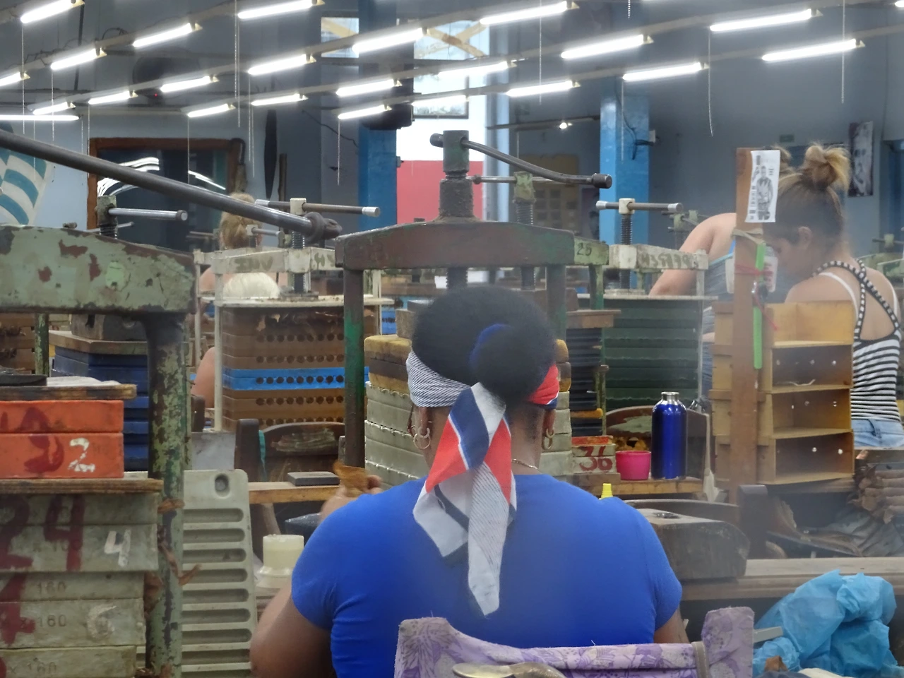조금은 과하게 촘촘한 방충망과 안전 창살 너머로 사람들이 작업대에 앉아 열심히 쿠바산 시가를 만들고 있었다. 만드는 공정을 전부 다 알고 있지 않아서 무엇을 하는 중인지 알 수는 없었지만 가지런히 쌓아둔 상자와 포장 상자에 담기기 전의 시가들이 가지런히 놓여 있었다.
