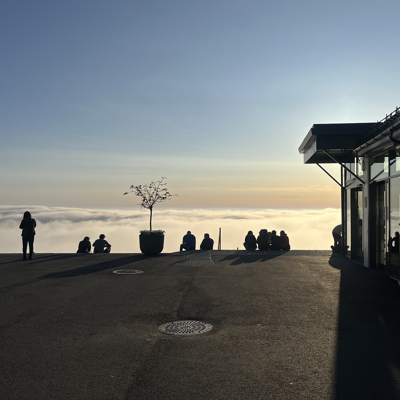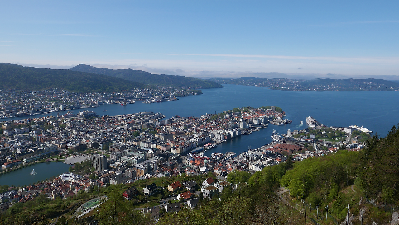 사실 전날 저녁에도 석양을 보기 위해 푸니쿨라를 타고 이곳에 올랐지만 안개가 풍경을 가렸다. 아쉽지만 발걸음을 돌렸고 아침에 오를 때만 해도 흐린 날씨에 큰 기대 없었다. 걷다 보니 날씨가 점차 맑아졌고 전망대에 도착하니 거짓말처럼 말로만 듣던 풍경이 눈앞에 나타났다. 전날 보여주지 않았던 전망이라 그런지 감동이 더 했다. 그렇게 오가는 사람들 사이 계단에 앉아 한참 동안 베르겐 시내를 눈에 담았다.
