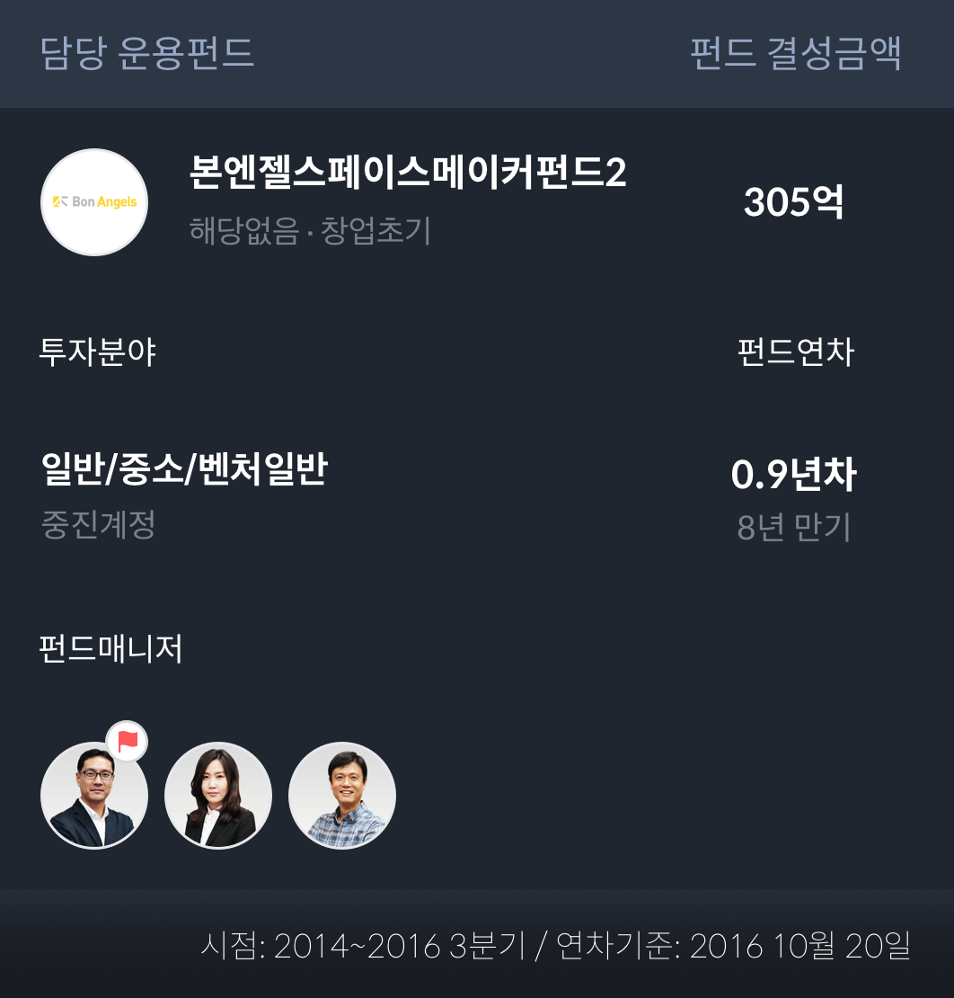 본엔젤스 페이스메이커 펀드2는 이제 갓 1년 된 펀드로서,