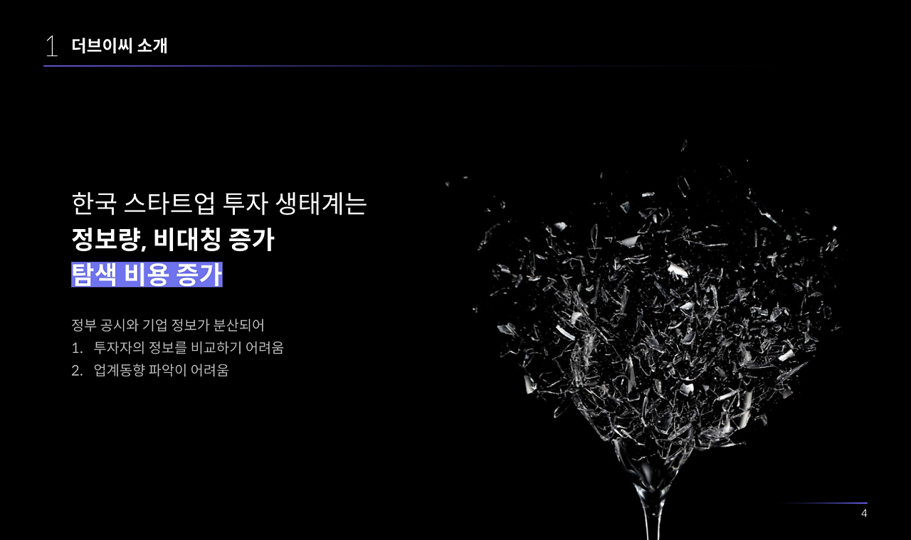 더브이씨에 투자유치를 등록한 340개 기업 중, pre-A 단계의 스타트업을 선정해 총 4개 팀이 VC를 대상으로 IR 피칭을 했습니다.