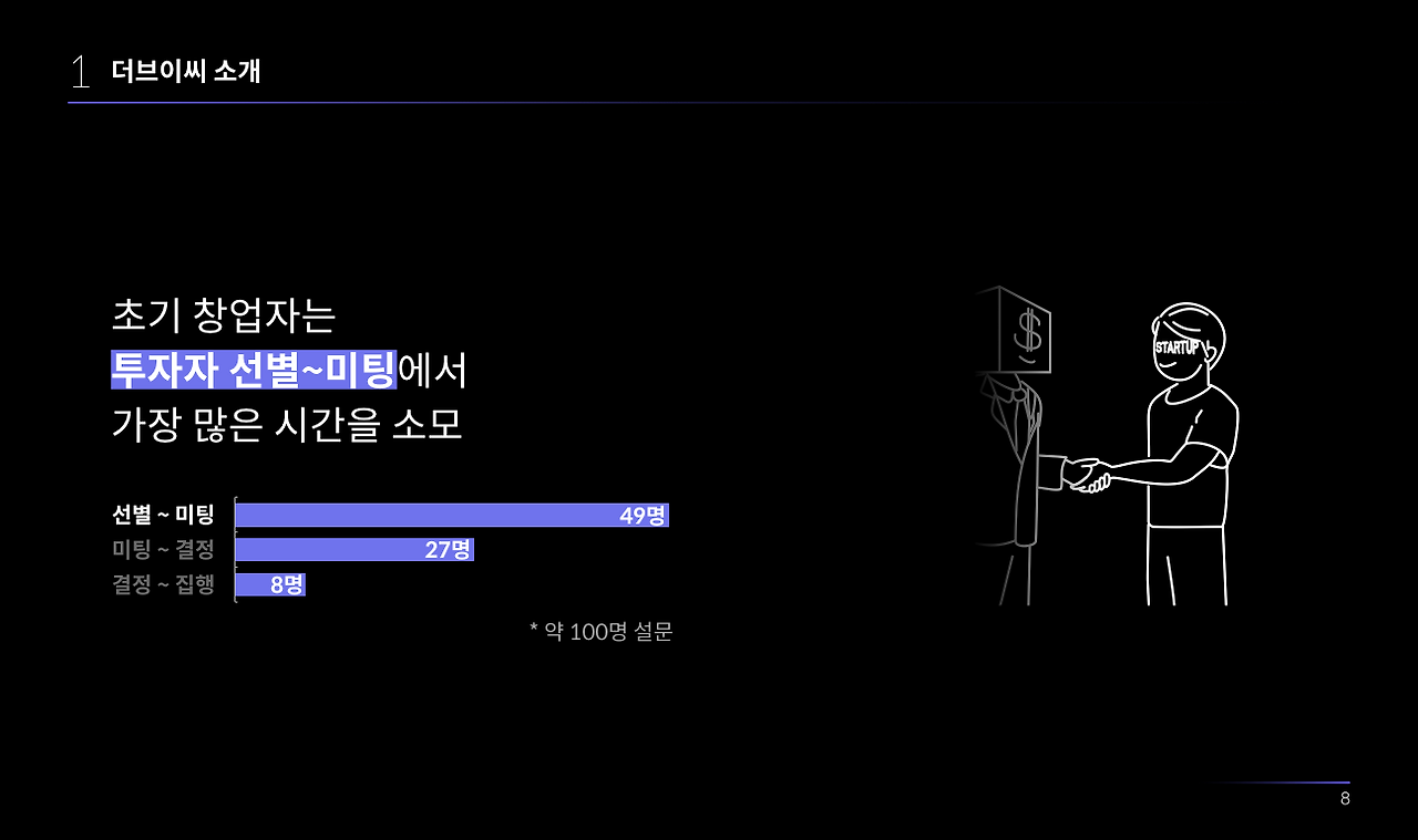 그래서, 더브이씨에 등록한 스타트업을 선별해 기관 투자자에게 소개하는 비공개 IR행사를 기획했습니다.