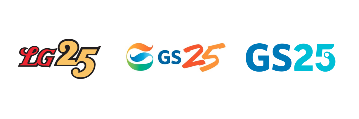 GS25는 구 LG유통의 편의점 'LG25'로 시작한 브랜드입니다. 2005년 LG그룹에서 유통이 분리되어 나오게 되면서 편의점뿐만 아니라 백화점, 홈쇼핑, 슈퍼마켓 등의 브랜드를 LG에서 GS로 교체하여 오늘의 GS25가 생겨나게 됩니다. 초기 GS25로 변경하는 과정에서 일부 점주들은 LG 브랜드가 지닌 브랜드 이미지를 믿고 편의점을 냈는데 갑자기 상호를 바꾸는 것은 계약위반이라며 60여 명 가맹점주들과 손해배상 청구 소송을 제기하기도 했습니다. 24시 편의점인데 왜 25라는 숫자를 쓰는 걸까요? 24시보다 더 오래 근무한다는 의미로 25라는 숫자를 쓰게 된 거라고 합니다. GS25는 BI를 14년 만에 변경하였습니다. 기존의 소매점포를 넘어 '라이프스타일 플랫폼'으로 탈바꿈하기 위해 변경했다고 합니다. 한발 더 나아가 모빌리티 플랫폼으로 전기차 충전 설비까지 갖추겠다는 GS25의 포부도 지켜볼만한 것 같습니다.