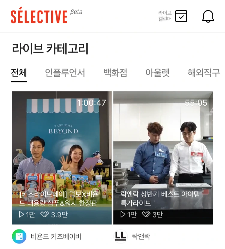수박레터 24호 브랜드들의 랜선 스킨십에서 다뤘던 라이브 커머스 기억하시고 계신가요? 라이브 스트리밍과 이커머스의 합성어인 라이브 커머스는 그동안 많은 성과를 내고 있었습니다. 셀렉티브에서 라이브 커머스를 진행한 인천 굴림만두 청라점은 5월 11일 라이브 커머스로 1시간 만에 6000인분의 주문을 받았고, 방송이 지난 후에도 재주문이 들어와 일 평균 매출이 20% 이상 증가했다고 밝혔습니다. 그 사이 롯데백화점은 라이브 쇼핑채널 100 라이브를 오픈했고, 신세계 TV쇼핑은 홈쇼핑 최초로 라이브 커머스를 시작하며 영상 콘텐츠를 제작하는 자회사 '마인드마크'를 설립했습니다.