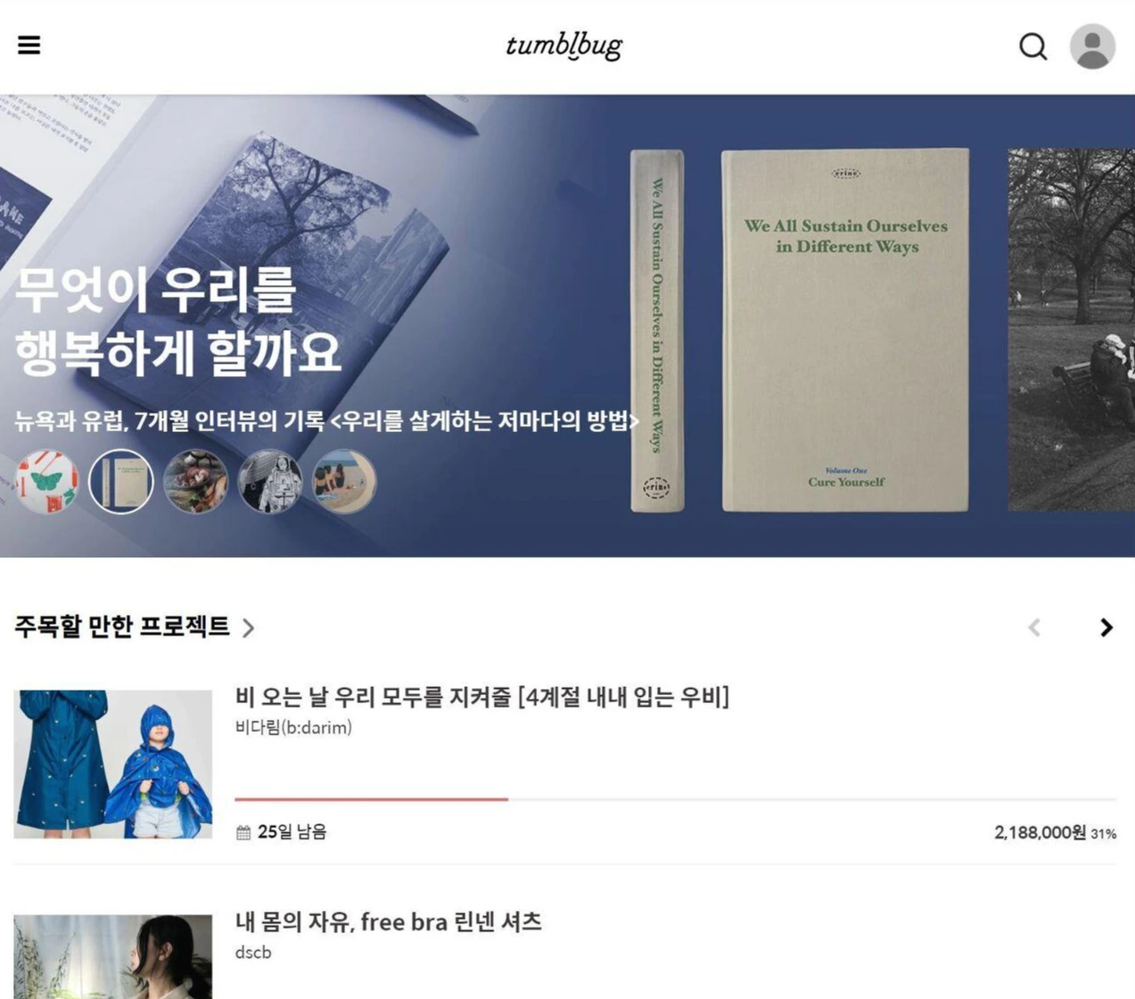 아이디어스를 운영하는 백패커는 투자를 바탕으로 서비스 고도화에 집중하고, 수공예 시장 발전을 위한 투자 및 인수합병을 진행할 것이라고 말했는데요. 그 첫 주자가 텀블벅이 되었습니다. 텀블벅은 2011년에 서비스를 시작한 이래, 다양한 분야의 창조적인 시도를 위한 토양을 만드는 일에 전념해 왔는데요. 대한민국 대표 크라우드펀딩 플랫폼이 되었죠. 문화, 예술, 창업, 비영리 등 다양한 분야에서 창작자와 후원자를 연결하여 새로운 프로젝트들이 탄생하도록 도와주었는데요. 창작자의 새로운 도전의 장을 해주는 두 곳의 성장이 기대됩니다. 백패커의 기업 이미지가 선명해지는 느낌이네요.