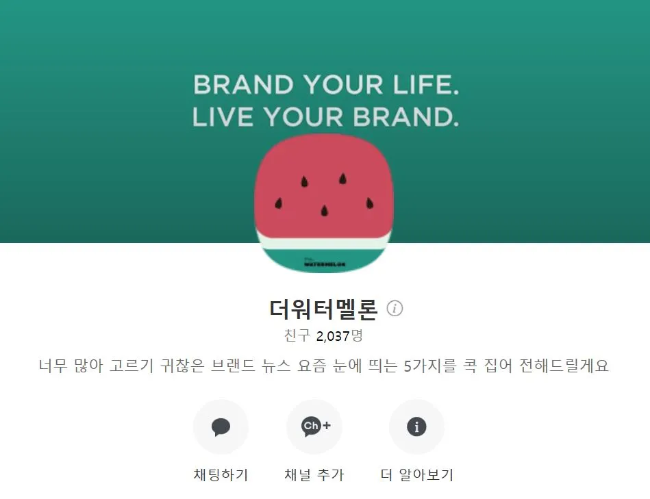 더워터멜론이 매주 보내드리는 브랜드 뉴스레터를 받아보고 싶다면? 카카오톡에서 '더워터멜론'채널을 검색하여 추가해주세요! 수박 레터가 다뤘으면 하는 브랜드가 있다면? 언제든지 (hi@thewatermelon.com)으로 연락 주세요! 여러분의 궁금증을 하나하나 열심히 파헤쳐드리겠습니다. 수박레터 구독자가 여러분들 덕분에 2000명을 돌파했어요! 앞으로도 많은 관심과 응원 부탁드립니다 :D 다음 수박레터에서도 우리 일상 속에서 쓰윽 지나칠 수도 있는 브랜드 뉴스를 다룰 수 있도록 하겠습니다.