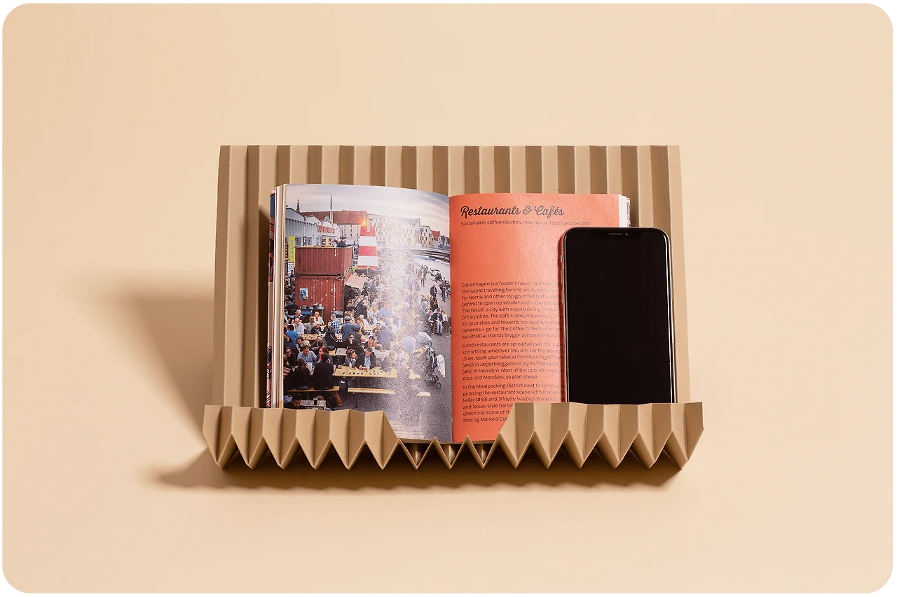 종이로 만든 스탠드 제품도 있습니다. 이는 쓰레기가 되어도 언제든지 수명을 다하면 자연으로 돌아갈 수 있는 제품인 것이죠. 5R에서 rot, reuse에 해당하는 상품인 것인데요. 스탠드는 재생지를 활용하고, 접착제 코팅과 같은 화학적 가공을 거치지 않아 수명이 다하면 언제든 자연으로 돌아갈 수 있게 만들어진 제품입니다. 소비자가 가치소비를 하는 것도 중요하지만, 이러한 선택이 있기 전에 생산자가 의식있는 소비를 할 수 있도록 제품을 만드는 것도 중요한데요. 제로 웨이스트 가치 추구를 위한 생산, 소비 생태계를 만들어갈 디자이너 혹은 기획자의 역할에 생각해보게 됩니다.