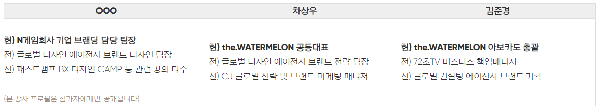 박ㅇㅇ님 : 지금껏 경험해본 브랜딩 관련 교육 중 가장 체계적이라고 느껴졌습니다. 매주 주말마다 물심양면으로 수고해주셔서 교육받는 내내 감사한 마음으로 임할 수 있었습니다!