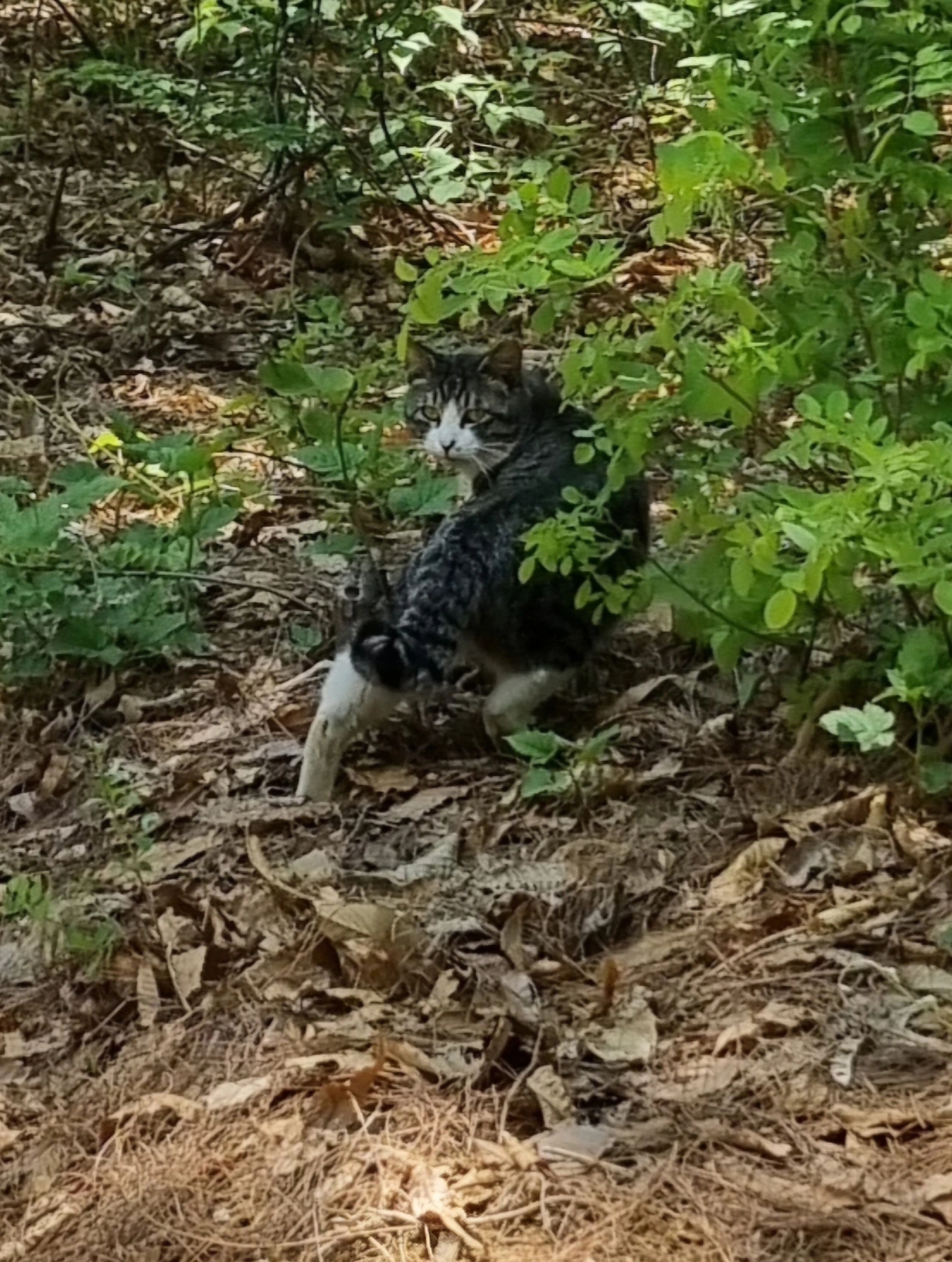 산책 중 산속에서 마주친 길냥이다. 산고양이니까 산냥이라고 해야 하나.