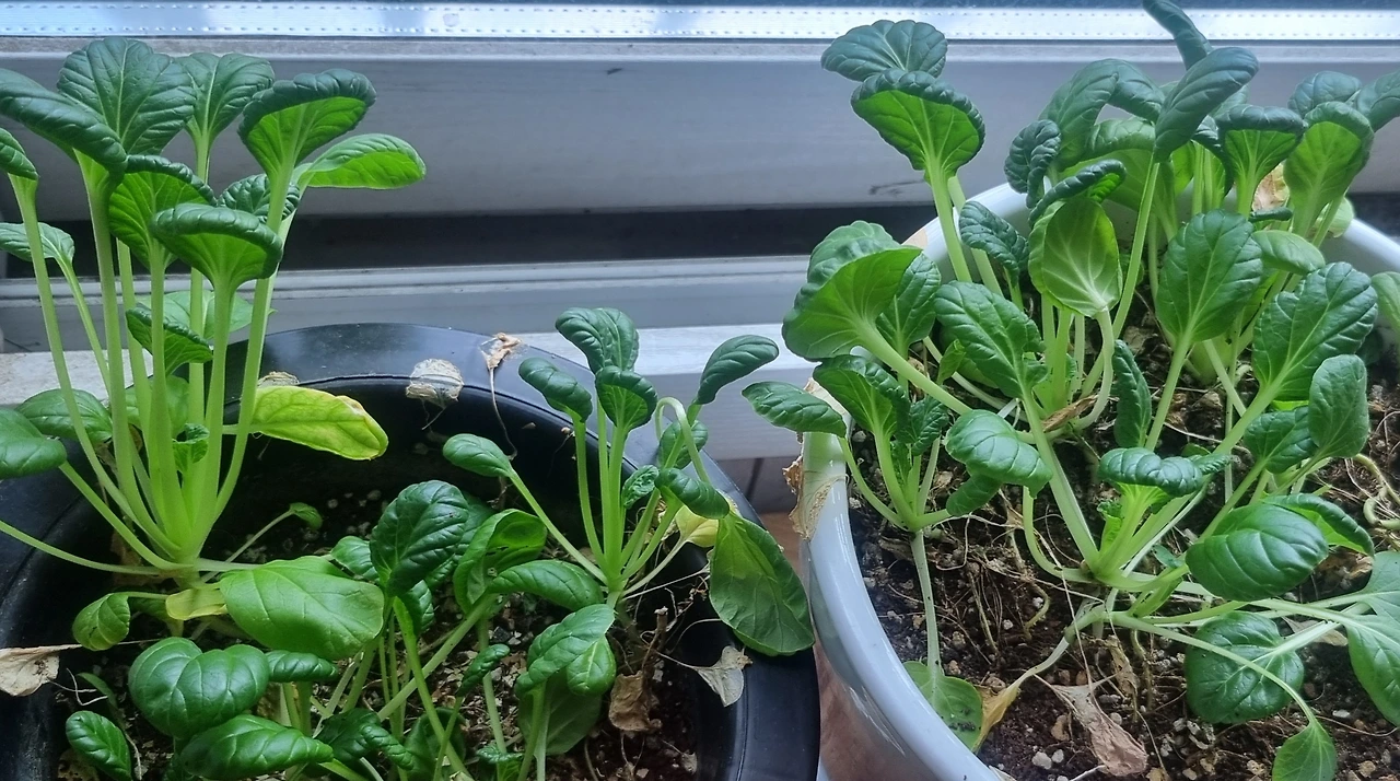 다이소에서 몇 달 전 비타민채 씨앗을 화분에 심었는데 그것들이 무럭무럭 자라서 이제 먹을 만한 크기가 되었다.