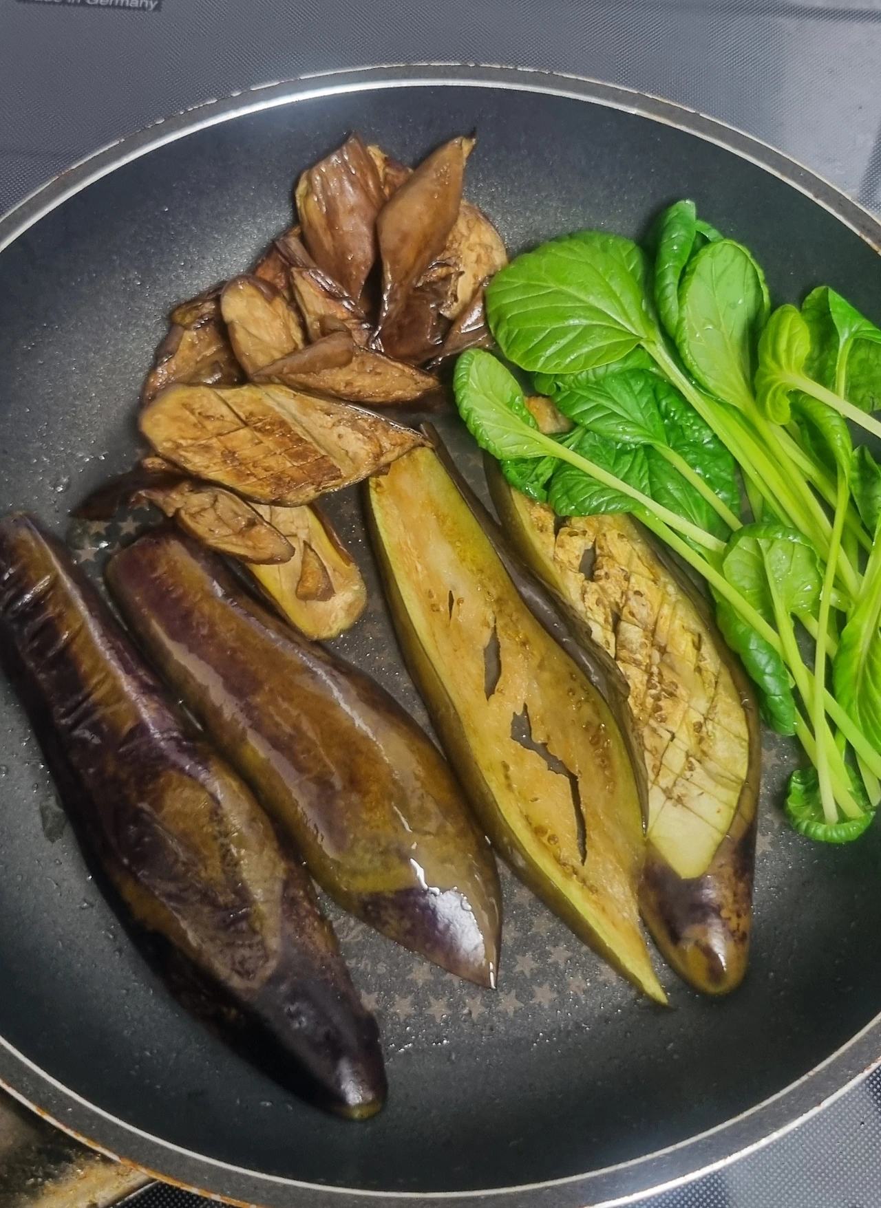 기름을 두른 프라이팬에 가지와 비타민채를 살짝 굽는다.