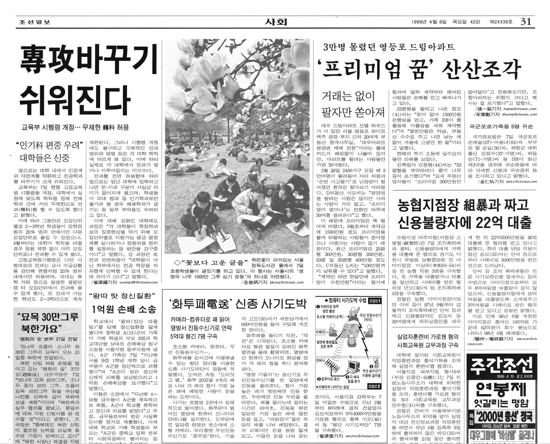 두 번째 발견, 1999년 조선일보 전기병 기자의 사회 31면 정독도서관 사생대회 관련 기사이다.