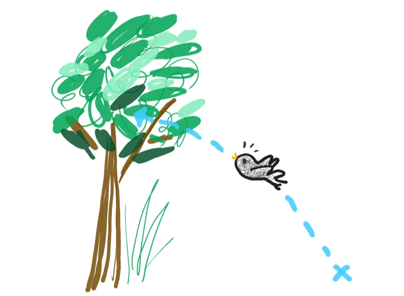 "엄마새는 어디에 있니? 암튼... 방법은 날아서 안전한 나무 위로 가야 해 아기새야."