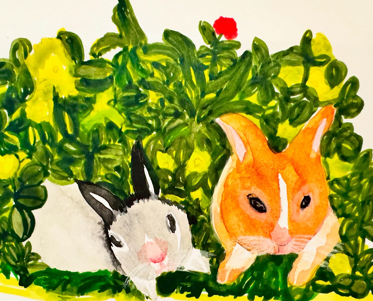 호기심 많은 아기 토끼들아