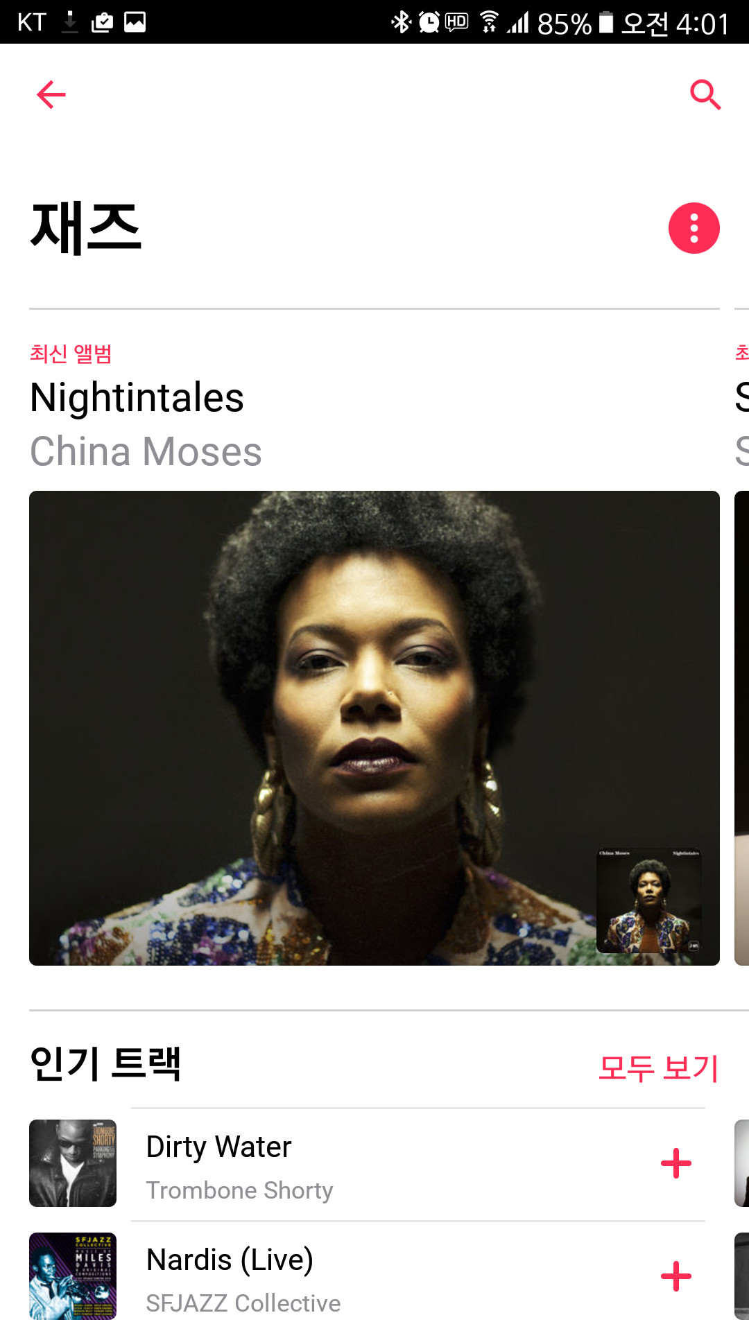 난 최신곡이나 재생목록보다는 개별 장르 페이지를 많이 이용하는 편이다. 그래서 가장 먼저 개별 장르 페이지의 디자인을 확인했다. 최신 앨범, 인기 트랙, 추천 음악 등 내용 면에서는 이전과 큰 차이는 없다. 하지만 디자인이 시원시원하게 바뀌어서 눈에 확 들어온다. 빈 공간은 적고, 앨범 커버와 아티스트 사진은 큼지막하게 키워서 눈에 확 들어온다.