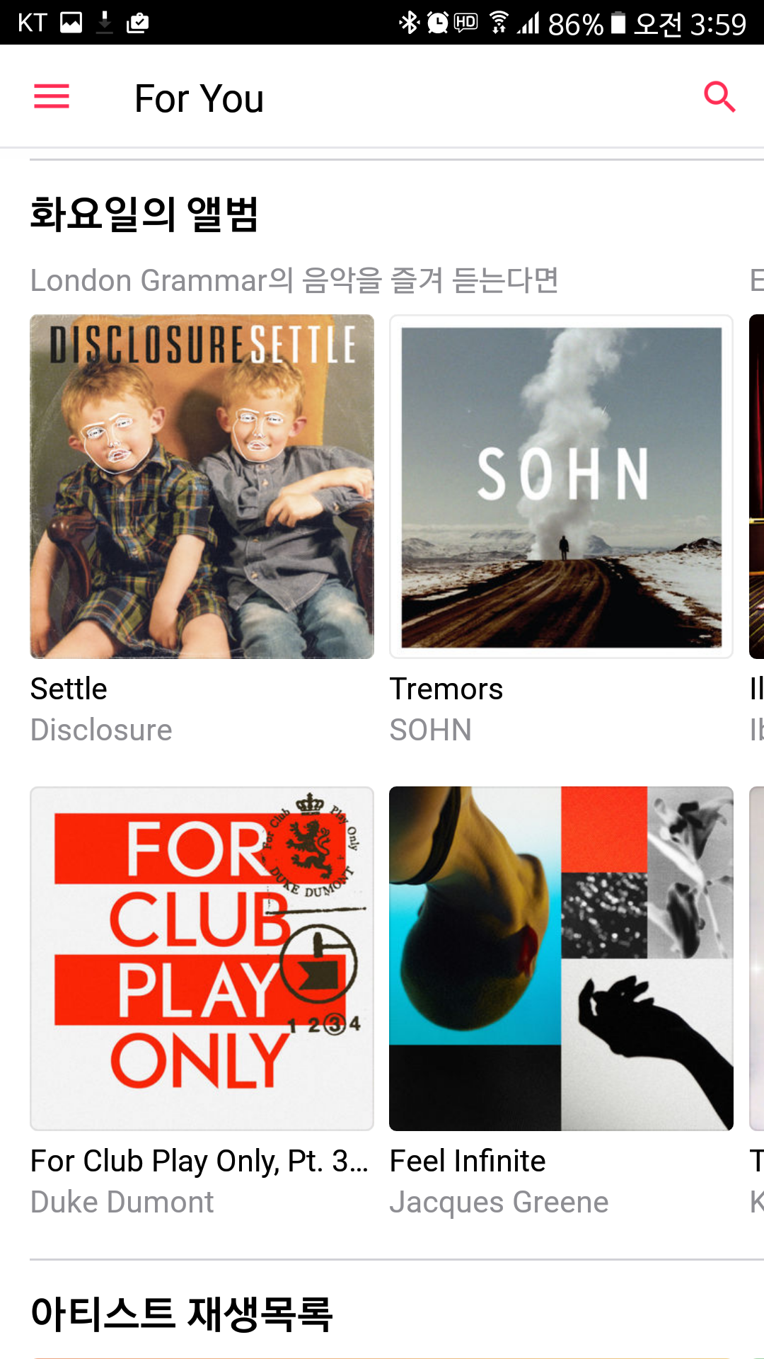 그나마 유용한 건 재생목록 추천이었다. 상대적으로 애플 뮤직의 재생목록을 잘 쓰지 않기 때문에, 새로운 음악을 찾는 소스는 거의 재생목록이다. 그런 점에서 재생목록 추천은 쓸모 있었지만, "For You"에 노출되는 건 거의 아티스트 재생목록이었고, 그 아티스트는 내가 자주 들은 히스토리를 바탕으로 추천하는 거였으니까, 실제 새로운 음악을 발견하는 재생목록은 흔치 않았다고 봐도 무방하다.