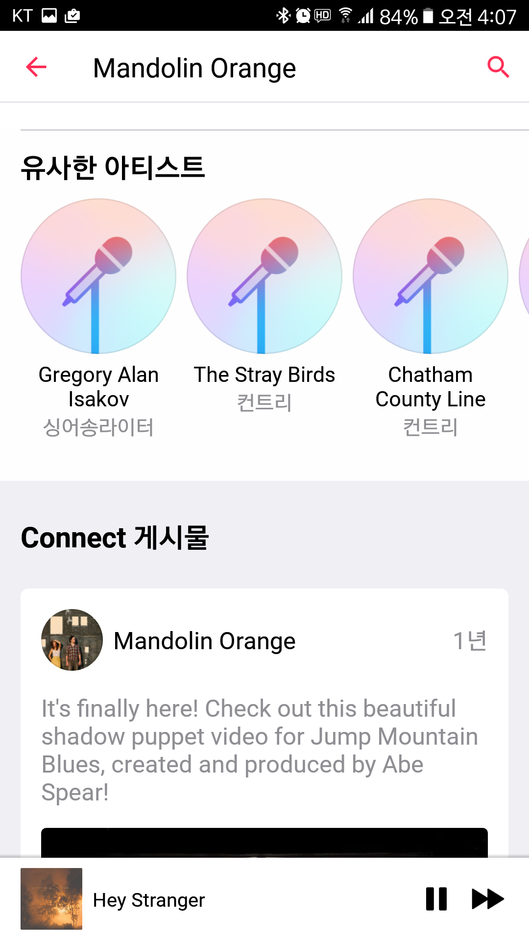 재생을 하다가 중간에 아티스트 페이지로 들어가 봤다. 이전에는 잘 노출되지 않았던 '유사한 아티스트' 콘텐츠가 아티스트 페이지 하단에 마련되어 있다. 예전에 미국 계정으로 애플 뮤직을 이용했을 때 가장 유용하게 썼던 기능이 "유사한 앨범"이었다. 그런데 한국 아이튠즈에서는 그게 잘 안 되더라. 같은 아이튠즈 아닌가여. 유사한 아티스트 기능을 노출이 잘 되게 디자인을 바꾼 건 마음에 든다. 다만 유사 아티스트는 8개까지만 추천된다. 흠... 이왕 해줄 거면 9개를 하든가 12개를 하든가. 스크롤이 넘어가다 마는 느낌.