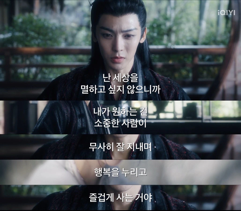 작년 말에 궈징밍 감독 인터뷰에 따르면 의도치 않게 고장극 3부작을 만들게 되었고, 그중 <대몽귀리>는 '생과 사'에 대한 이야기라고 했다. 그 말 그대로 이 드라마는 세상의 모든 악을 담은 한 요괴가 어떻게 죽는가…를 그린다. 이게 스포일러라고? 무려 2화에 "날 죽여라."가 대사로 나온다. 조원주의 죽음은 조원주-탁익신 사이의 은원을 청산하는 결과이지만, 거기에 그치지 않는다. <대몽귀리>는 자신을 증오해서 죽고 싶었던 존재가 세상을 사랑하고 지키기 위해 죽는 이야기다. 조금 과하게 해석한다면 주염/조원주가 자신의 방식으로 존재의 의의를 찾는 여정이다. 그게 죽음이라는 게 안타까울 뿐.