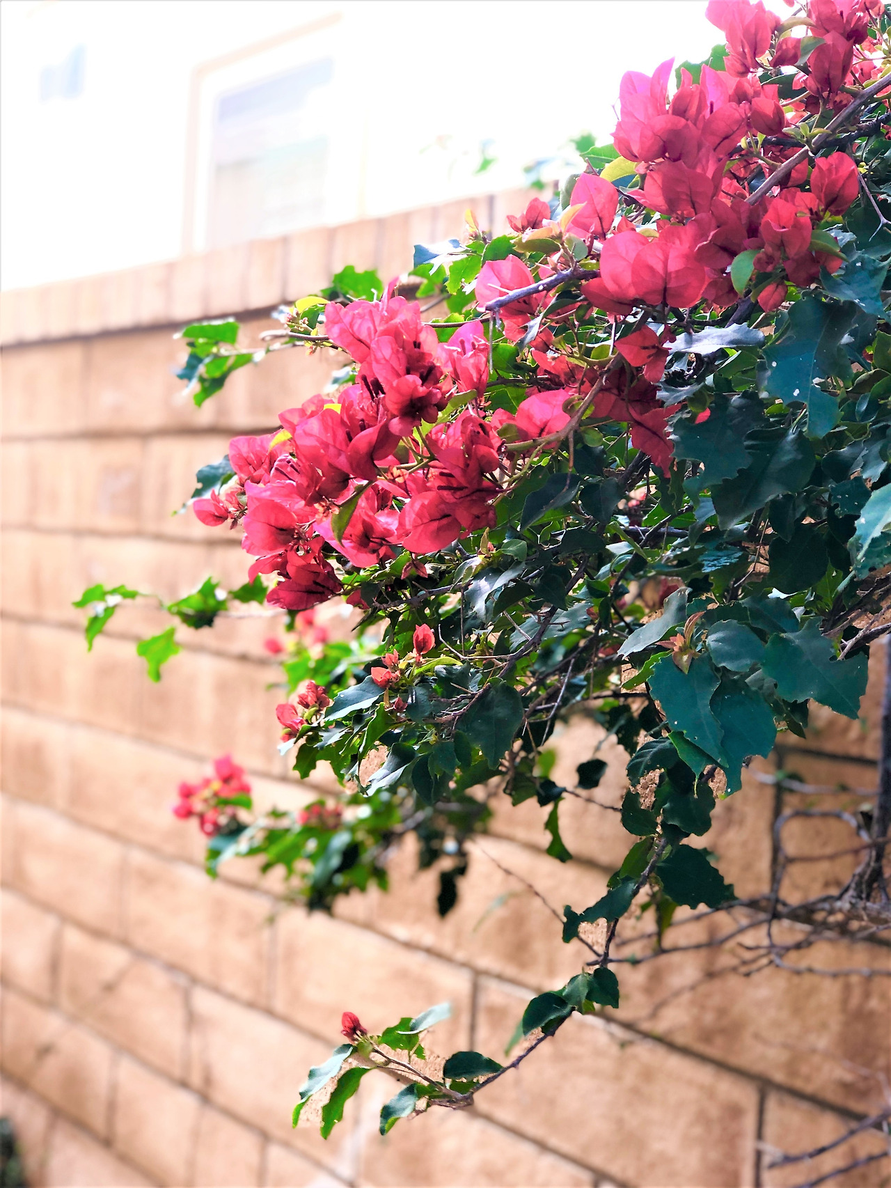 우선 벽을 따라 무섭게 자라던 스타자스민 덩굴을 과감하게 쳐냈다. 스타 자스민은 물을 주거나 말거나 말없이 잘 자라고 예쁘지는 않지만 향기가 좋은 하얗고 자잘한 꽃을 피우는 덩굴이다. 옆 마당 벽을 따라 스타자스민과 장미와 부겐빌레아가 번갈아 심어져 있는데 스타자스민의 기세가 얼마나 센지 다른 식물은 잘 보이지 않을 정도로 칭칭 감아서 덮어버렸다. 스타자스민에게는 미안하지만 배경이나 조연쯤의 역할에 머물도록 덩굴을 모두 잘랐다. 이제야 부겐빌레아와 장미가 숨을 좀 쉴 것 같다.