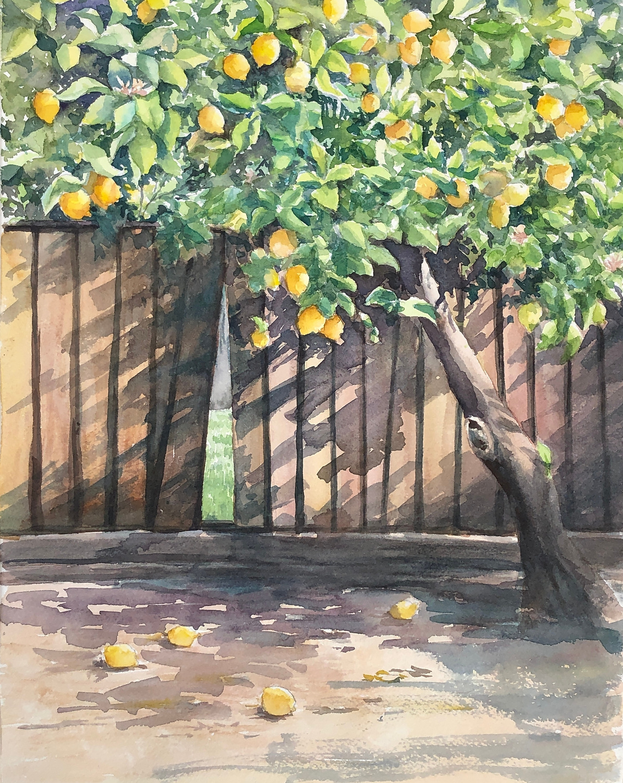 4월에 그린 연필 드로잉과 수채화 중에서 하나씩 밑에 올렸다. 연필로 그린 악어는 커뮤니티 칼리지 드로잉 중급반 온라인 코스 숙제로 그린 그림이다. 제목은 악어가 다쳤을 때라고 붙였다. 사진은 작게 나왔지만 14x17인치 종이에 그린 제법 큰 그림이다. 다친 악어로 변신시킬 수 있는 지친 악어 사진을 찾는 일부터가 난관이었고, 하얀 종이 배경에 하얀 꽃과 솜털을 표현하는 일도 쉽지 않아서 수십 번을 지우고 고쳐야 했다. 사진 찍기도 어려웠다. 몇 번 찍었지만 그림 원본에 그린 수백 개의 섬세한 연필 자국은 나오지 않았다. 레몬 그림은 이번 달에 여러 장 그렸는데 그중에 이 그림이 가장 마음에 든다.