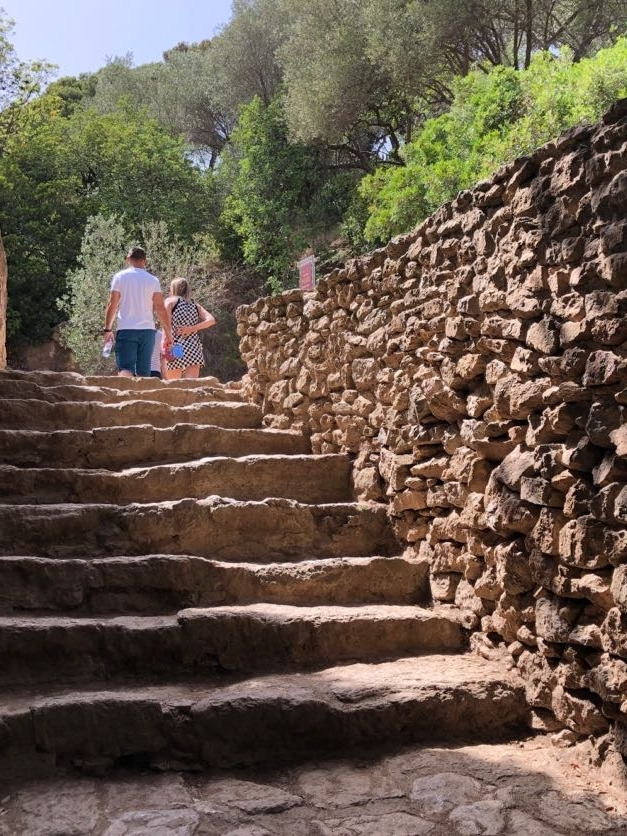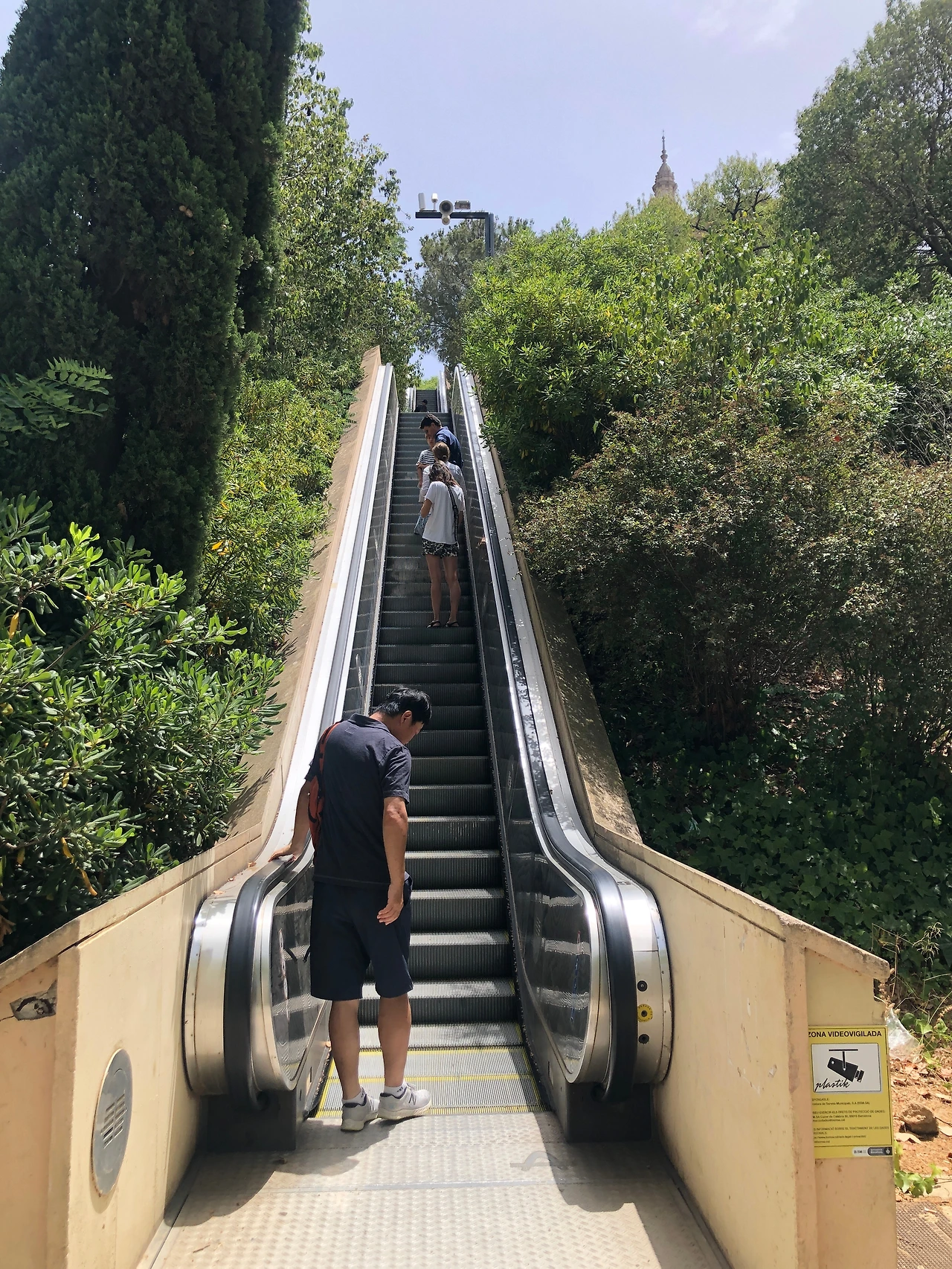 아침 식사 후 택시를 타고 바르셀로나에서 가장 높은 지역에 위치한 몬주익 언덕으로 향했다. 바르셀로나 공항에서 호텔로 갈 때 해안 도로를 타고 갔는데 해안 반대편으로 높은 언덕과 성벽 같은 것이 보여서 무엇인지 궁금했다. 호텔로 와서 찾아보니 몬주익이라는 지역이었다. 몬주익 언덕에 오르는 방법은 여러 가지가 있다. 전철을 타고 몬주익 언덕으로 가는 푸니쿨라를 타는 방법도 있고, 시내버스를 타고 가고나 걸어올라가도 된다. 푸니쿨라에서 내리면 꼭대기에 위치한 캐슬까지 갈 수 있다. 우리는 택시를 타고 중턱에서 내려서 캐슬이 위치한 꼭대기까지 걸어올라갔다. 몬주익은 유태인의 산이라는 뜻이라는데 바르셀로나 올림픽을 치른 스테디움이 위치한 곳으로도 유명하다.