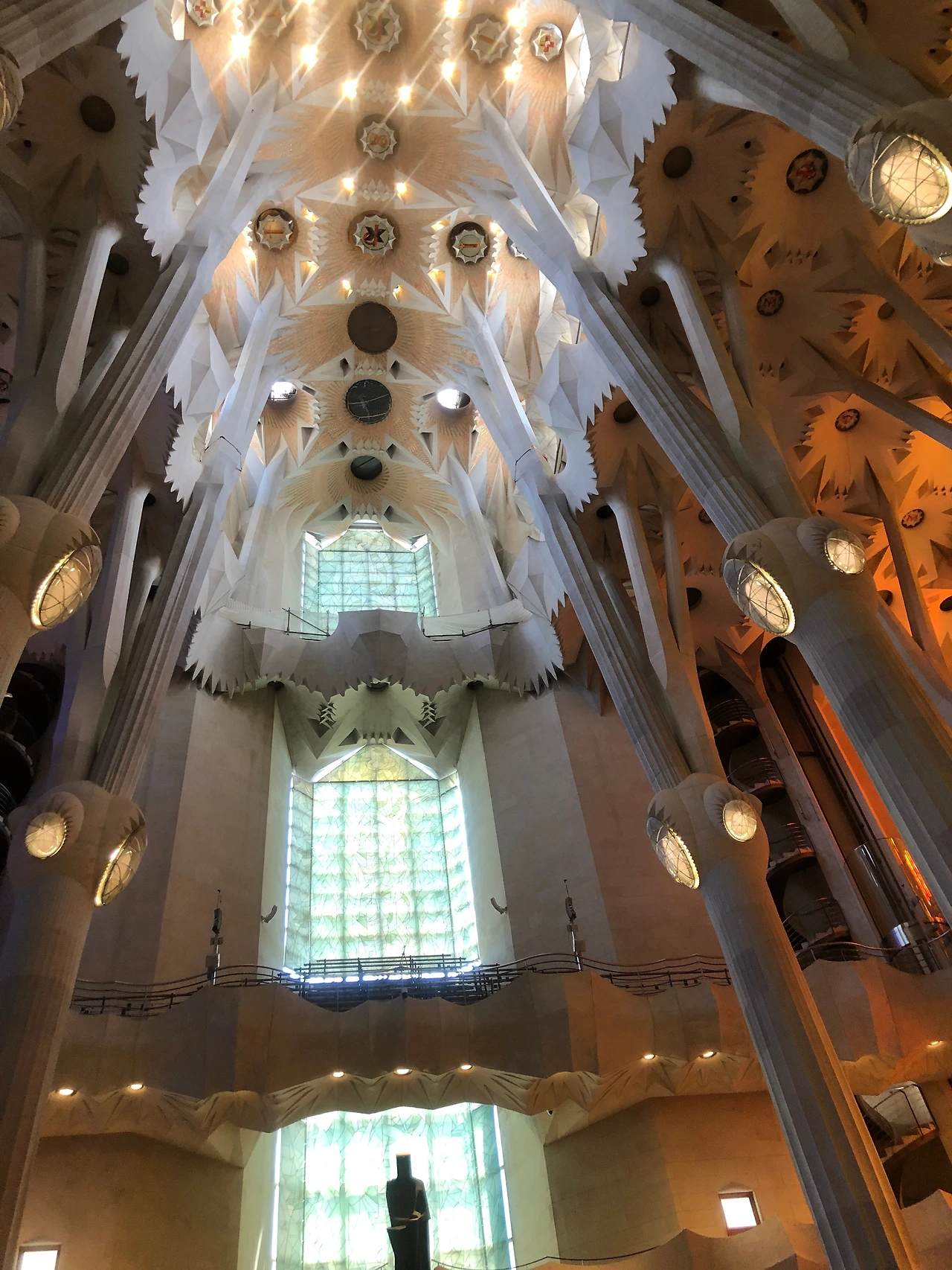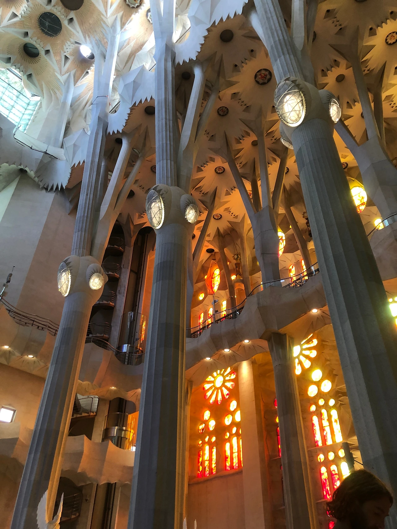 사그라다 파밀리아는 가우디가 설계하고 건축을 진행하다가 교통사고로 사망한 뒤 지금까지 계속되고 있으며 가우디 서거 100주년이 되는 2026년 완공이 목표라고 한다. 하지만 이 성당은 이런 말로 요약할 수 없는 곳이며 이런 요약은 전혀 적절하지 않다. 예술적 각도에서 성당 곳곳에 상징과 표현 양식도 어마어마할 것으로 짐작한다. 건축학적 측면에서 당시 불가능했던 설계를 구현한 걸작임은 당연히 말할 나위도 없다. 이 분야에 식견이 부족한 나로서는 감히 상상만 할 뿐이다. 이 거대한 위대한 건축물에서 내가 금방 발걸음을 돌릴 수 없고 뭉클함을 느낀 힘은 이 성당이 커뮤니티를 끌어안는 공간이기 때문이었다. 성당은 종교적, 예술적 가치를 넘어 건축 당시 그 시대와 사회의 사연을 담아내고 있어 여행할 때마다 성당을 둘러보기 좋아한다. 규모 측면과 유명세 측면에서는 이 곳을 어느 다른 유럽의 성당과 비교하여 이야기할 수 있을지 모르겠다. 하지만 이 건축물은 찬양을 받을 대상을 위해 그 앞에 무릎 꿇는 대중의 희생을 전제로 하는 다른 성당과는 확연히 다른 느낌을 준다. 그 안에 들어서는 사람들이 경외감보다는, 신의 품의 안기고 창조물의 생명력을 간접적으로 누릴 수 있는 그런 공간이다. 건물 지하 층에는 가우디가 시신이 안장되어 있다.
